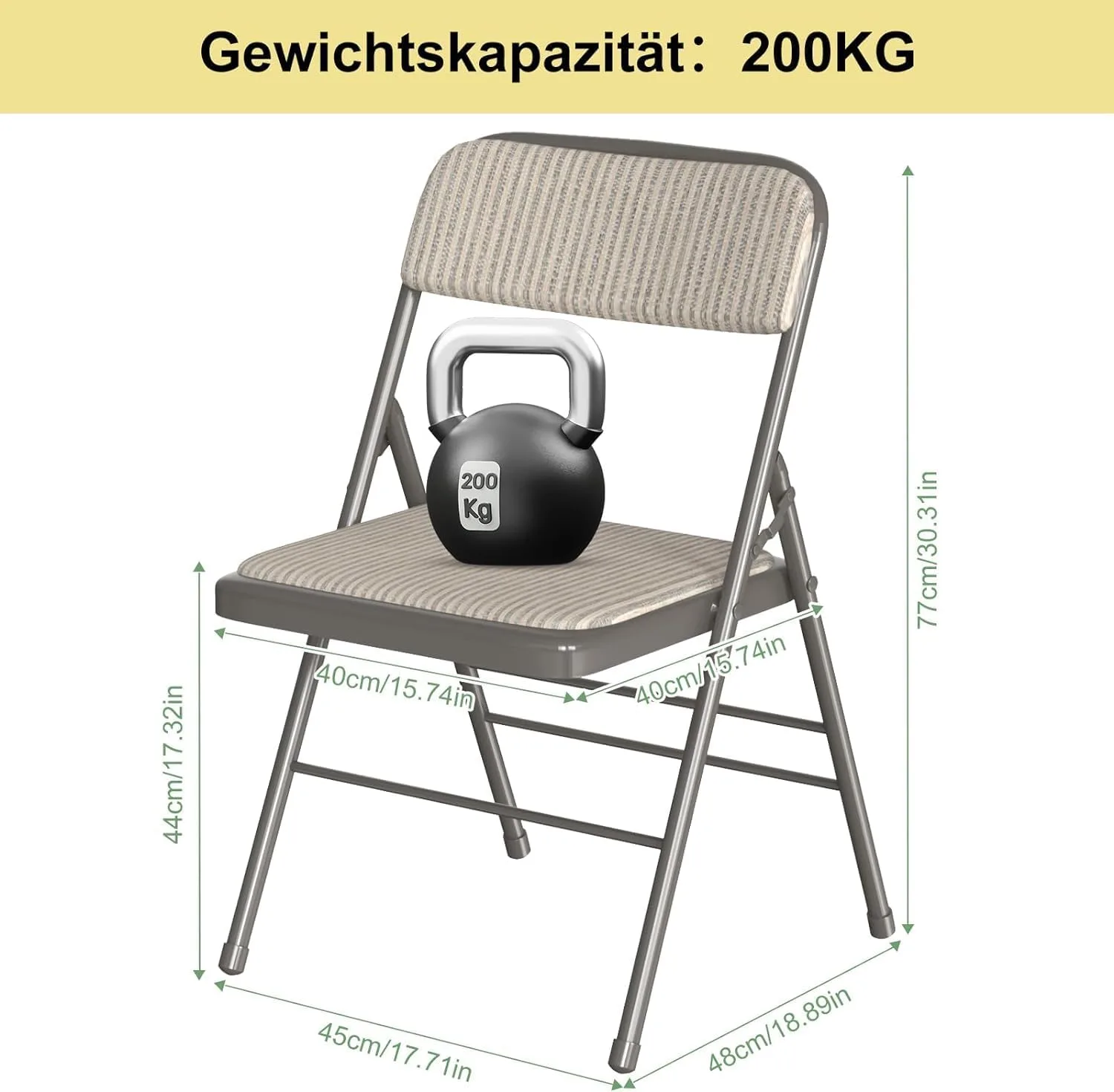 Sólida y estable: la estructura de esta silla plegable está hecha de acero de metal de alta calidad con clips de metal para mejorar la estabilidad de la silla. Se incluyen pies de goma, que no solo aumentan la resistencia al deslizamiento, sino que también evitan arañazos en el suelo.