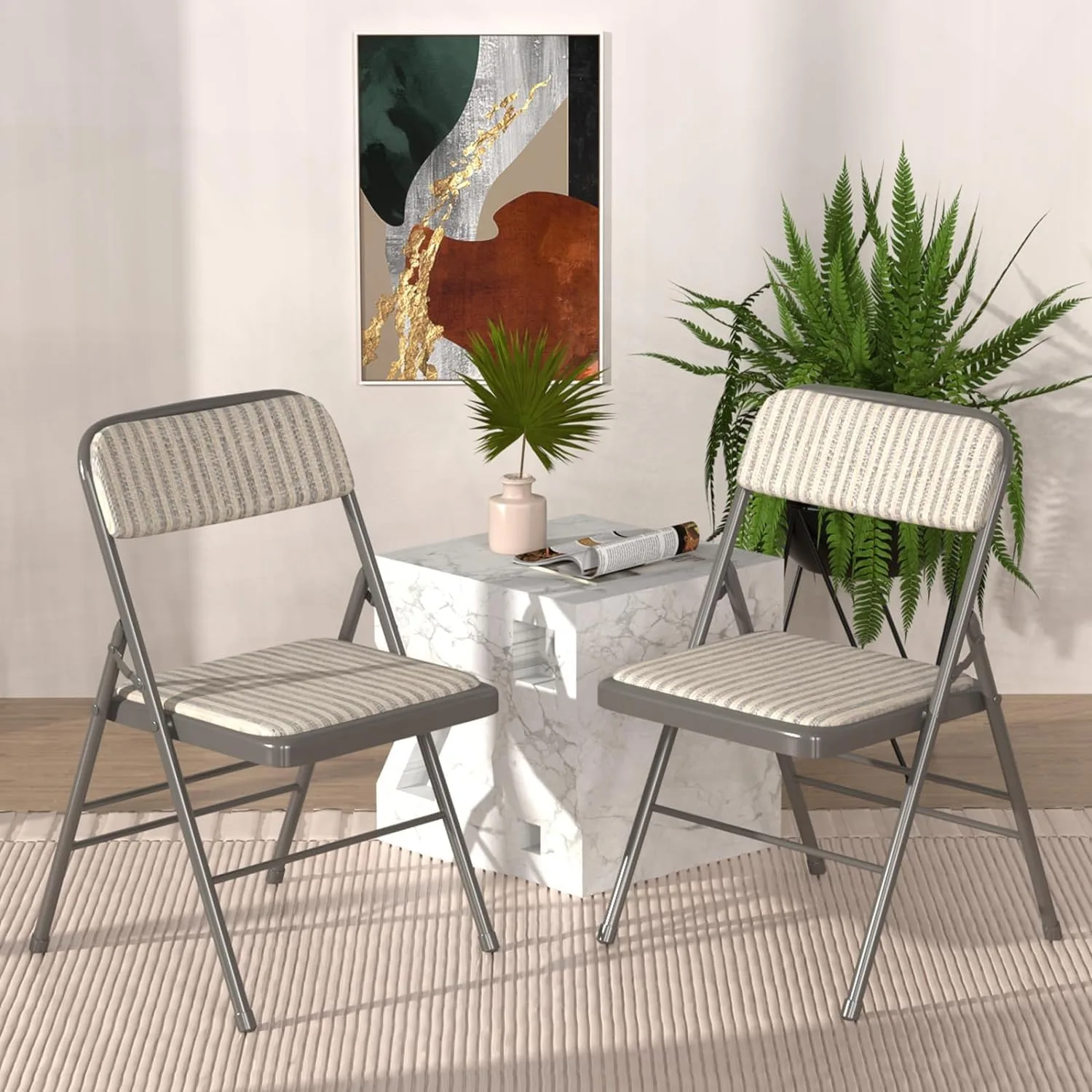 Juego de 2 sillas plegables de camping, sillas plegables a rayas con estructura de metal con respaldo, 45 x 48 x 77 cm, para salón, oficina, comedor, beige