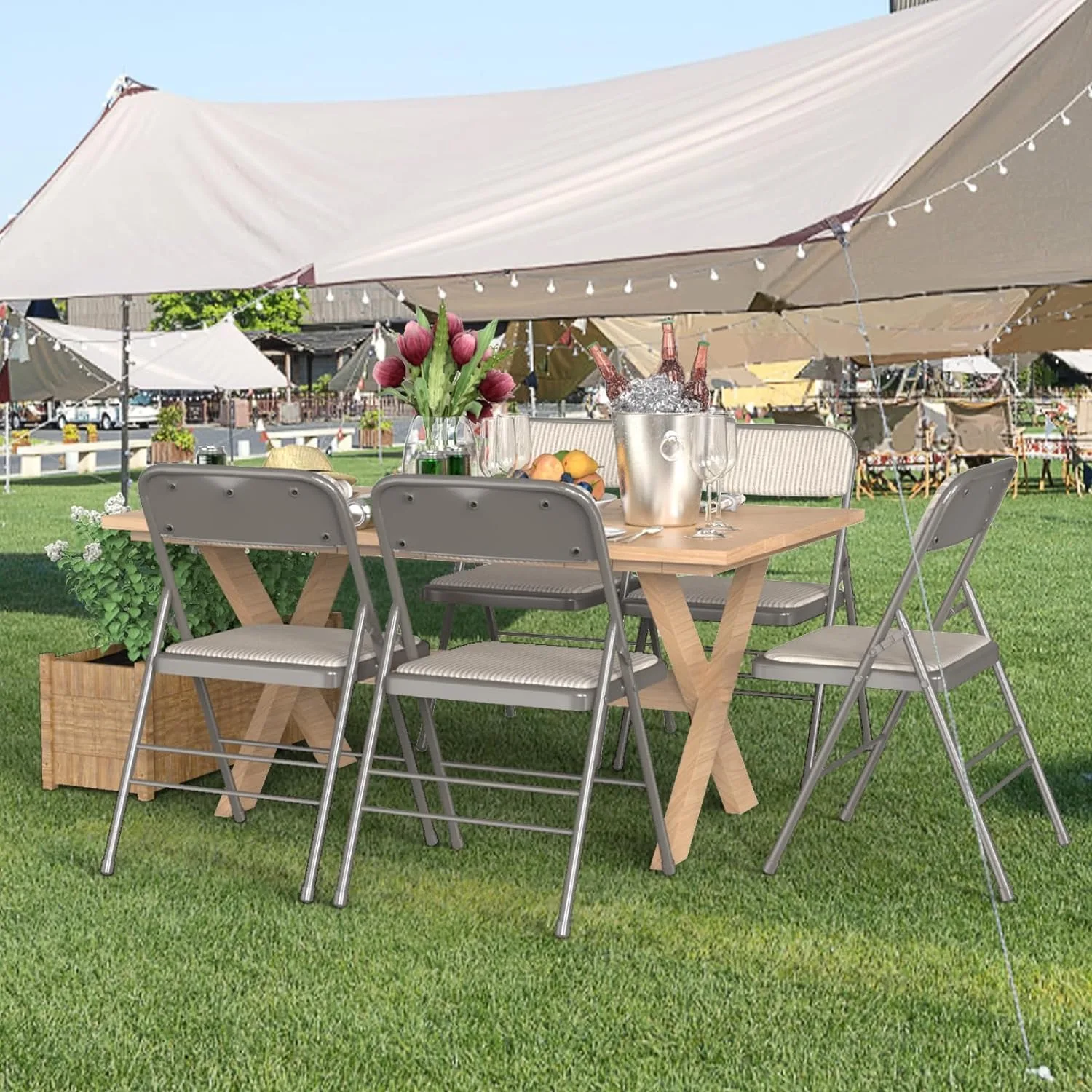 Material de calidad: la silla plegable está hecha de un marco de metal y un revestimiento de PVC. El cojín del asiento de la silla plegable es suave, cómodo y transpirable. Si se ensucia, se puede limpiar fácilmente con un paño para ahorrar tiempo, esfuerzo y molestias.