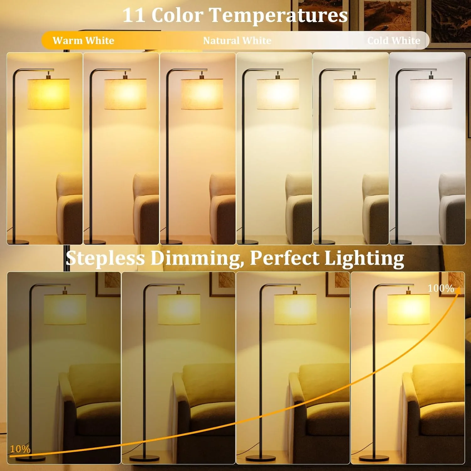【Tres temperaturas de color y regulable】Este lampara de pie ofrece un amplio rango de ajuste de temperatura de color, de 3000 K a 6000 K, y puede alternar libremente entre luz blanca cálida, blanca fría y blanca natural. Con un ajuste de brillo continuo del 10 % al 100 %, ya sea para concentrarse en el trabajo, leer de noche o usarla como luz nocturna ambiental, le proporciona la cantidad justa de luz cómoda y alivia eficazmente la fatiga visual