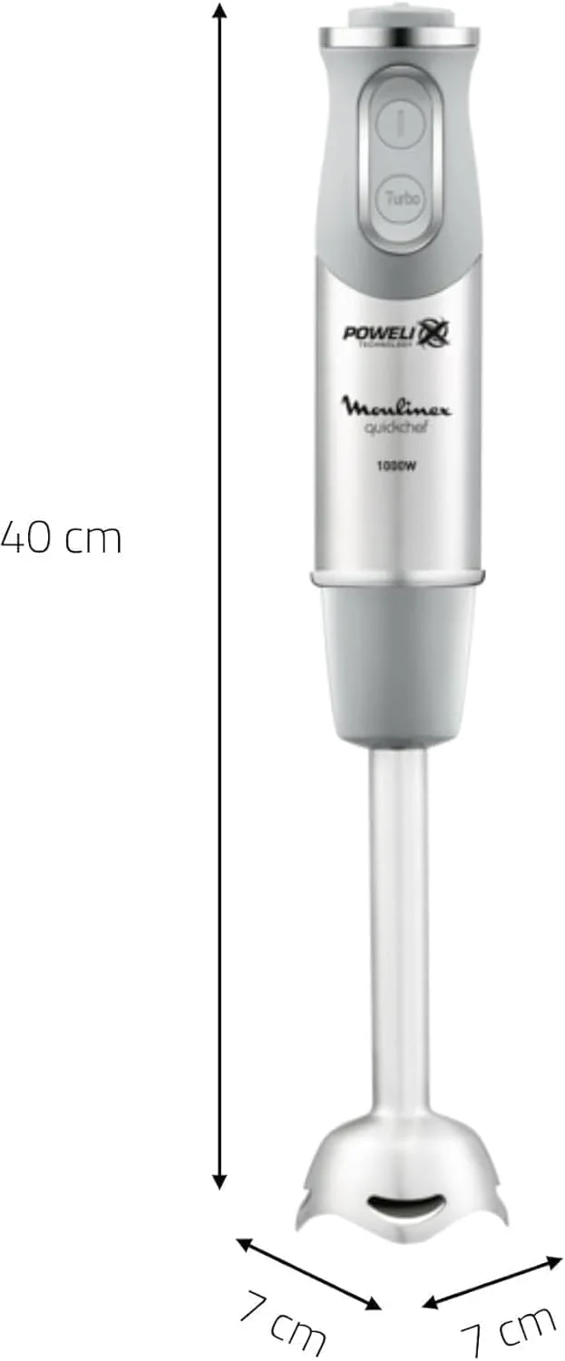Moulinex QuickChef, Batidora de Mano 1000 W, Regulador de 10 Velocidad Turbo, 3 Accesorios para Picar y Montar y Vaso Medidor, Cúpula Antisalpicaduras, Acero Inoxidable, DD655D