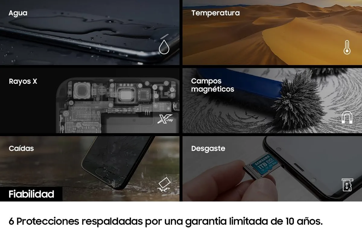 Óptima seguridad para tus datos gracias a la protección x6: resistente al agua⁶, a la temperatura⁷, a los rayos X⁸, a los imanes⁹, a las caídas¹⁰ y al desgaste¹¹