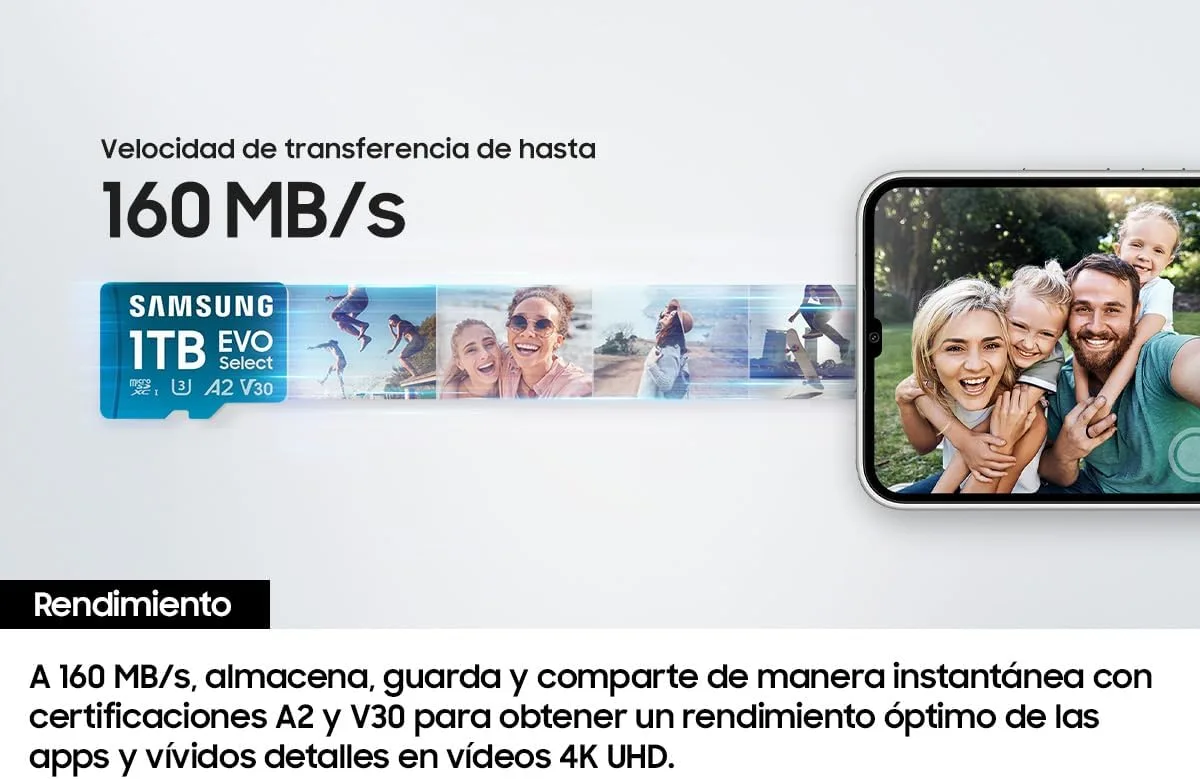 Sé el primero en valorar “Samsung EVO Select (2024) Tarjeta microSD + Adaptador SD, 128 GB, Tarjeta de Memoria para Smartphone y Tablet, UHS-I U3, 4K UHD, Full HD, Lectura 160 MB/s, MB-ME128SA/EU”
