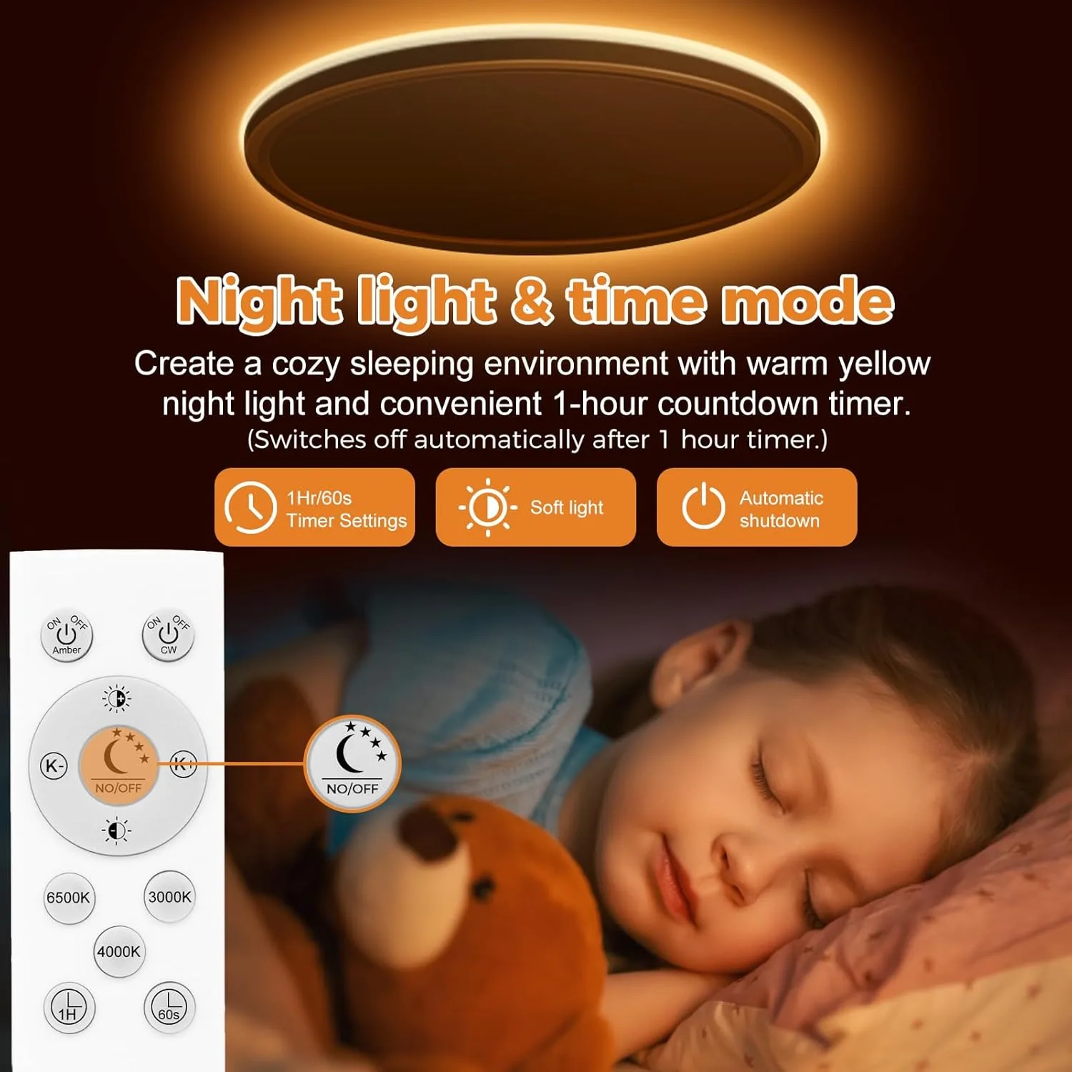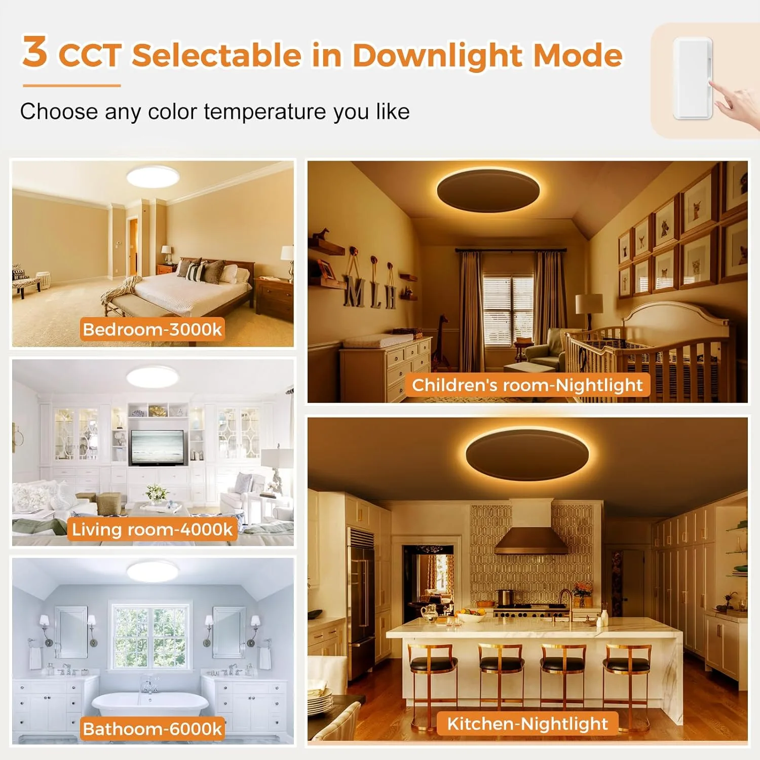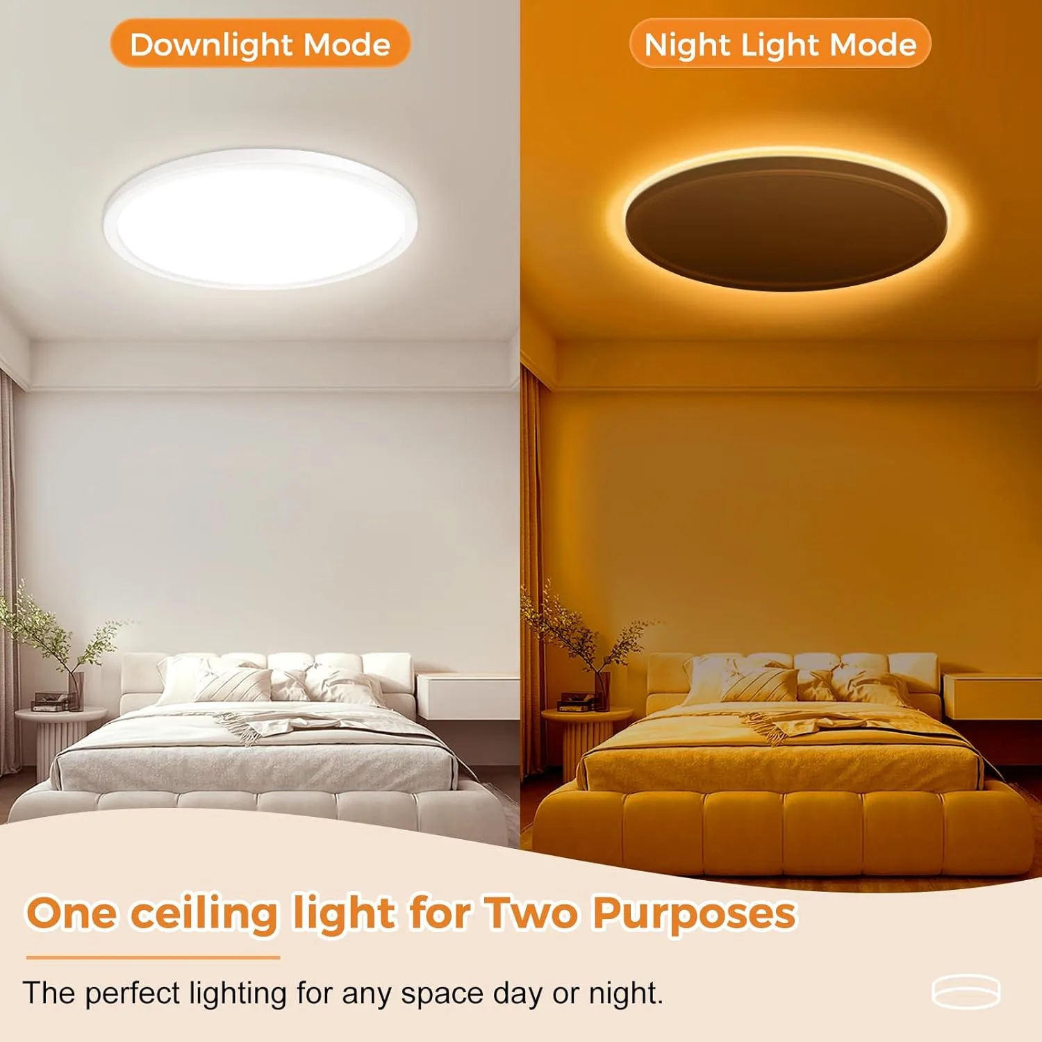【Luz Nocturna iluminada – proporciona un ambiente nocturno perfecto】plafon led techo con diseño de luz de fondo como luz nocturna,temperatura de color de 1800K;potencia de solo 6W, le proporciona el ambiente nocturno perfecto para ayudarle la calidad del sueño; Además, la luz principal y la luz de fondo se pueden iluminar de forma individual o simultánea, tanto si está trabajando, relajándose físicamente , esta lámpara de techo crea el ambiente de iluminación perfecto para todas las ocasiones.