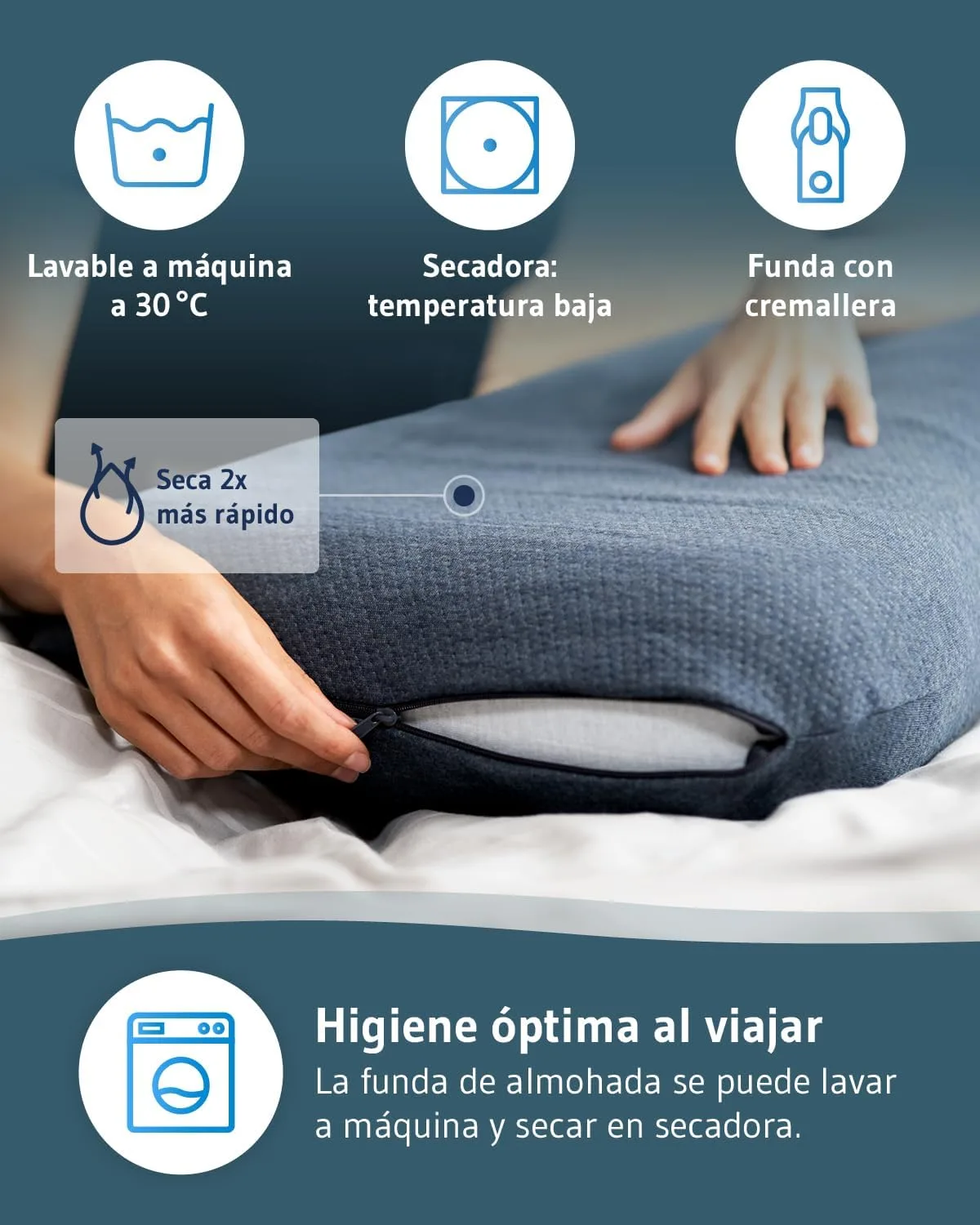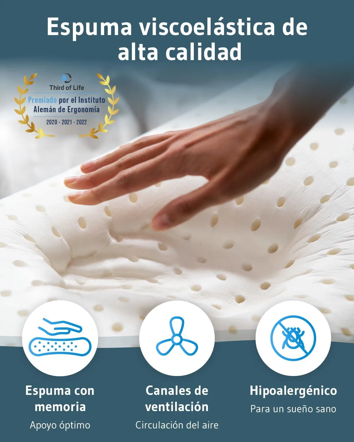 ➤ ERGONÓMICA E HIPOALERGÉNICA- La espuma con memory foam, ayuda a prevenir el dolor de espalda y cuello y alivia la tensión muscular en la zona cervical. Además, es resistente a los ácaros, ideal para las personas con alergias o asma