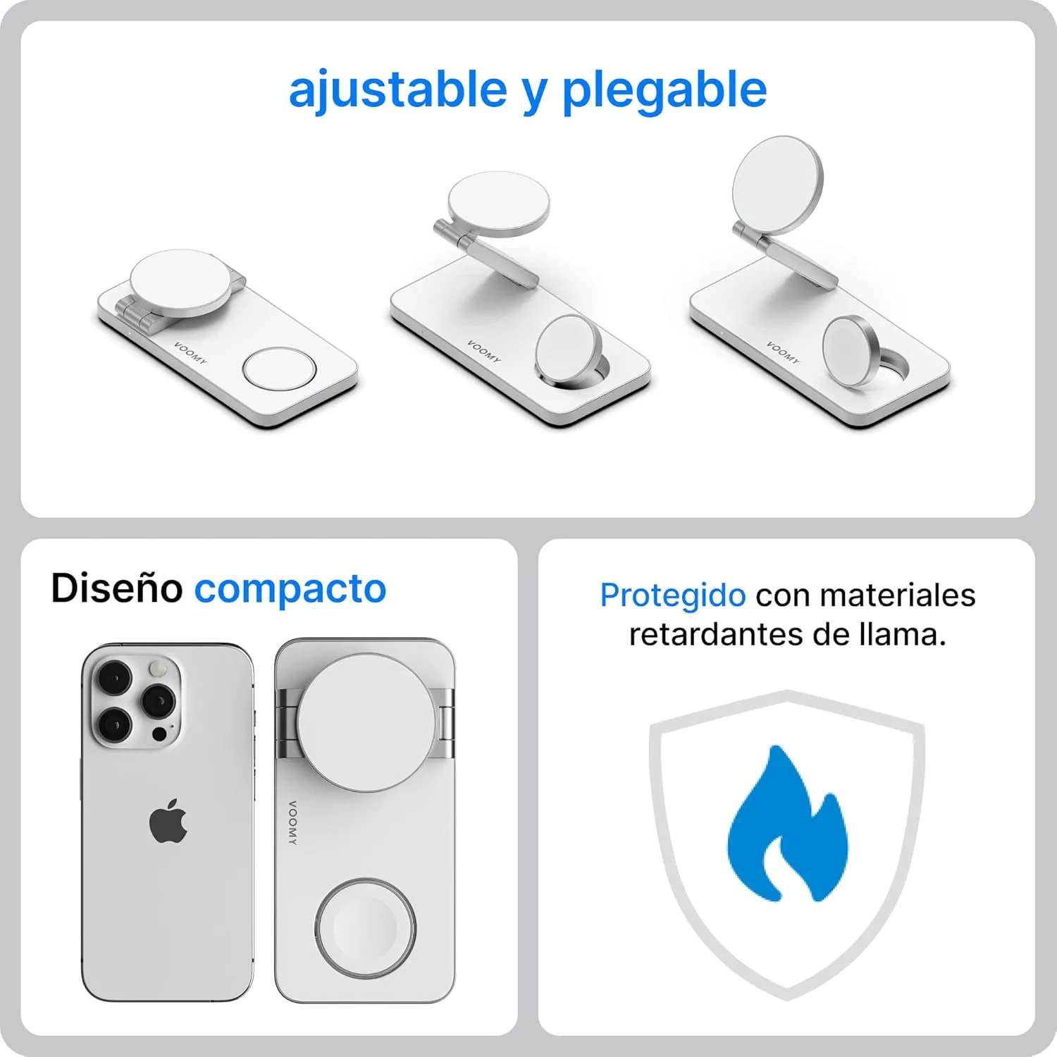 Sé el primero en valorar “Voomy Carga inalámbrica 3 en 1 MagSafe – Estación de Carga para iPhone, Apple Watch y AirPods – 15W, diseño Plegable, con USB-C y Adaptador – Compatible con MagSafe y Qi”