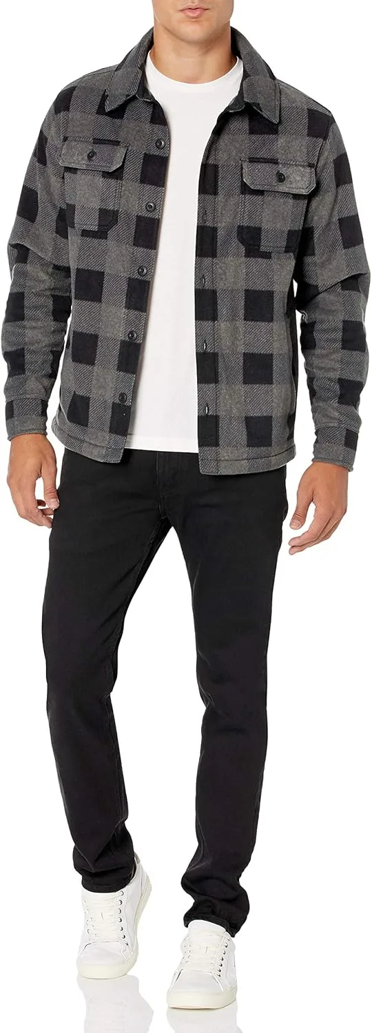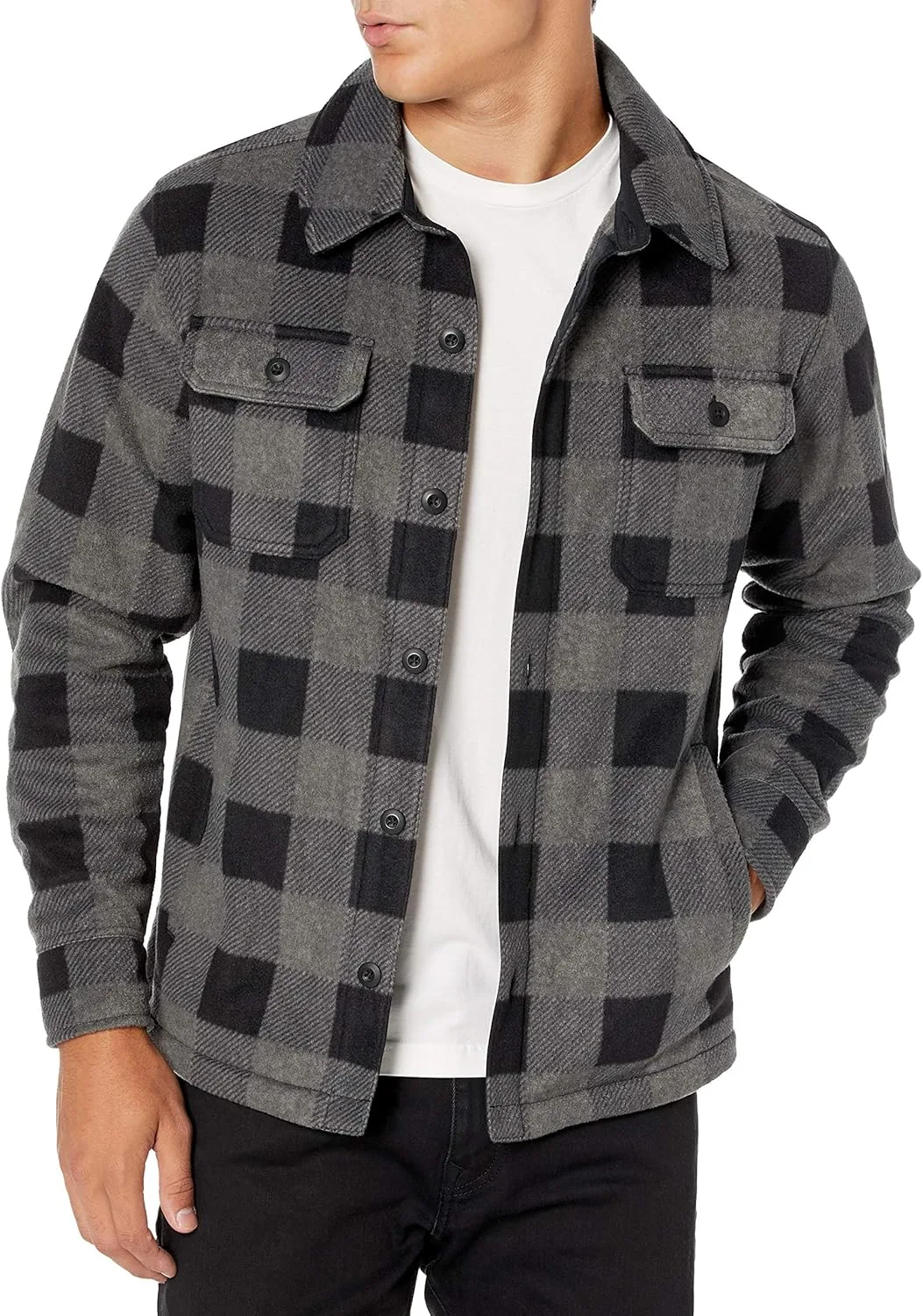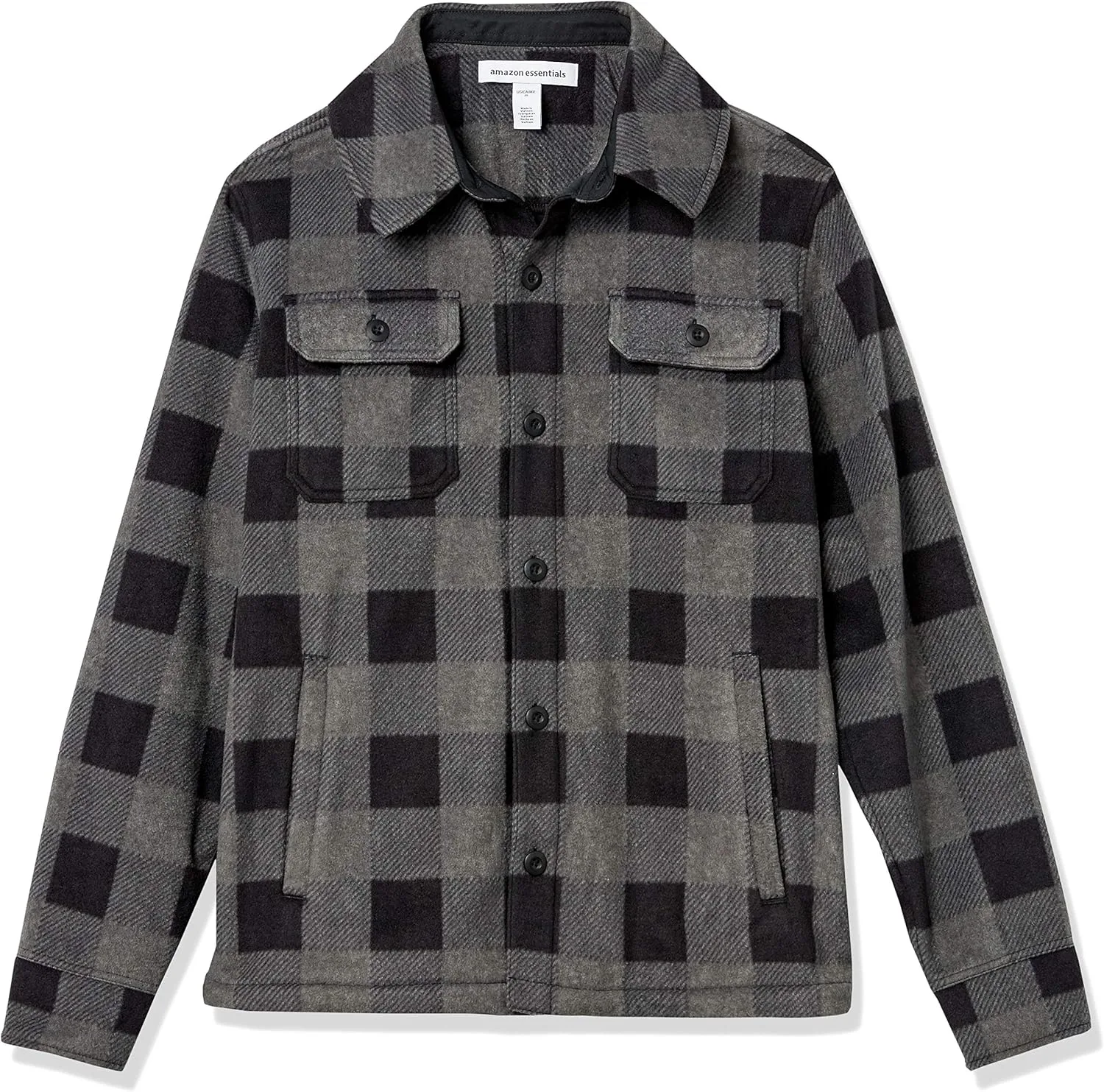 Una marca de Amazon: esta chaqueta de forro polar de peso medio cuenta con dos bolsillos ribeteados y dos bolsillos con solapa en el pecho con cierres de botón