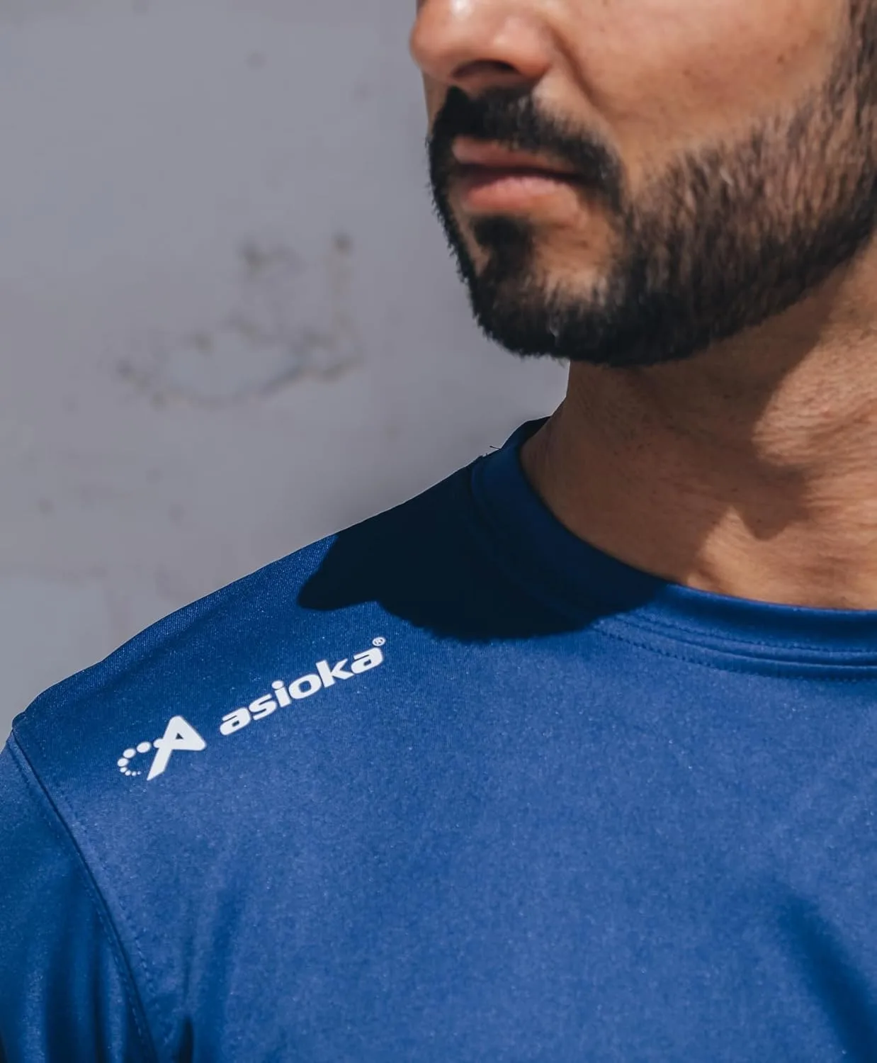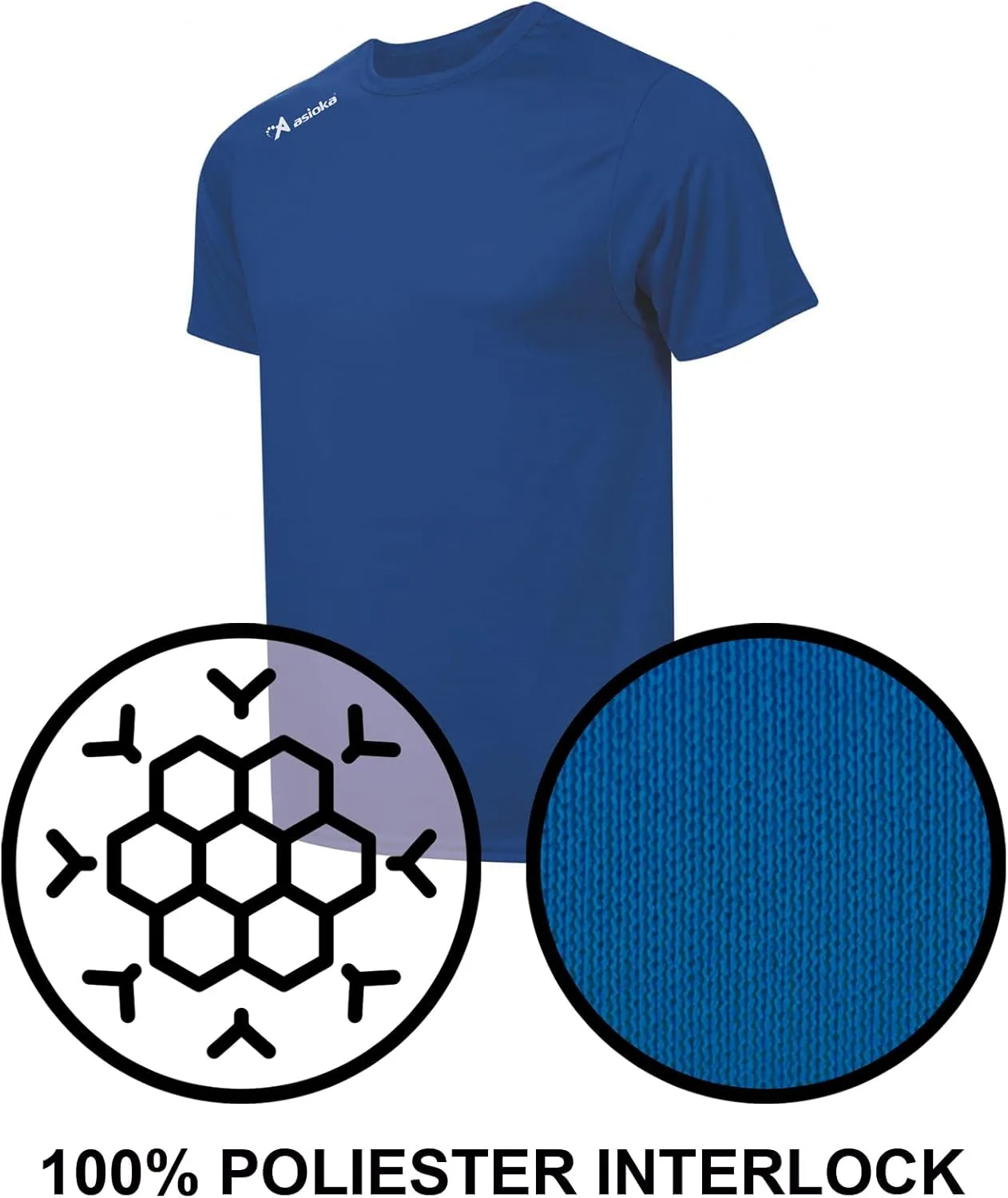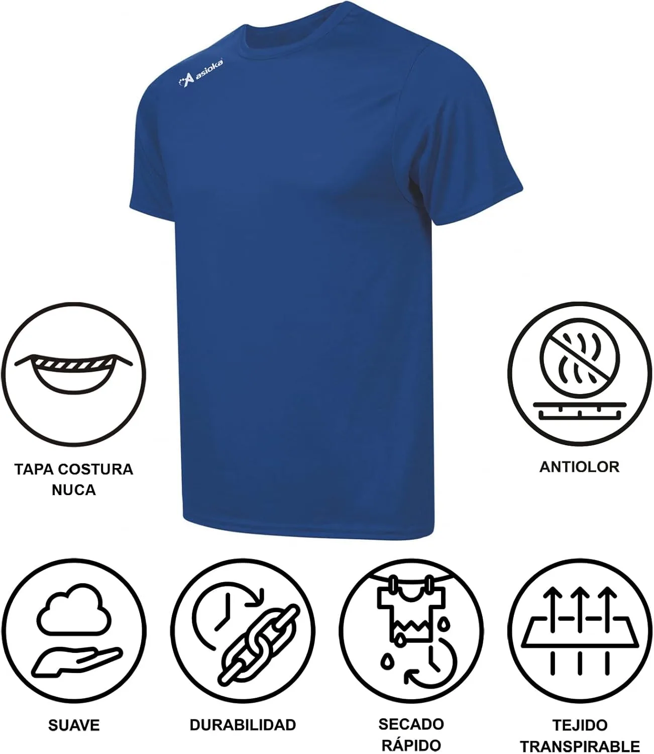Camiseta deportiva lisa para adultos con el logo serigrafiado ASIOKA en el hombro.