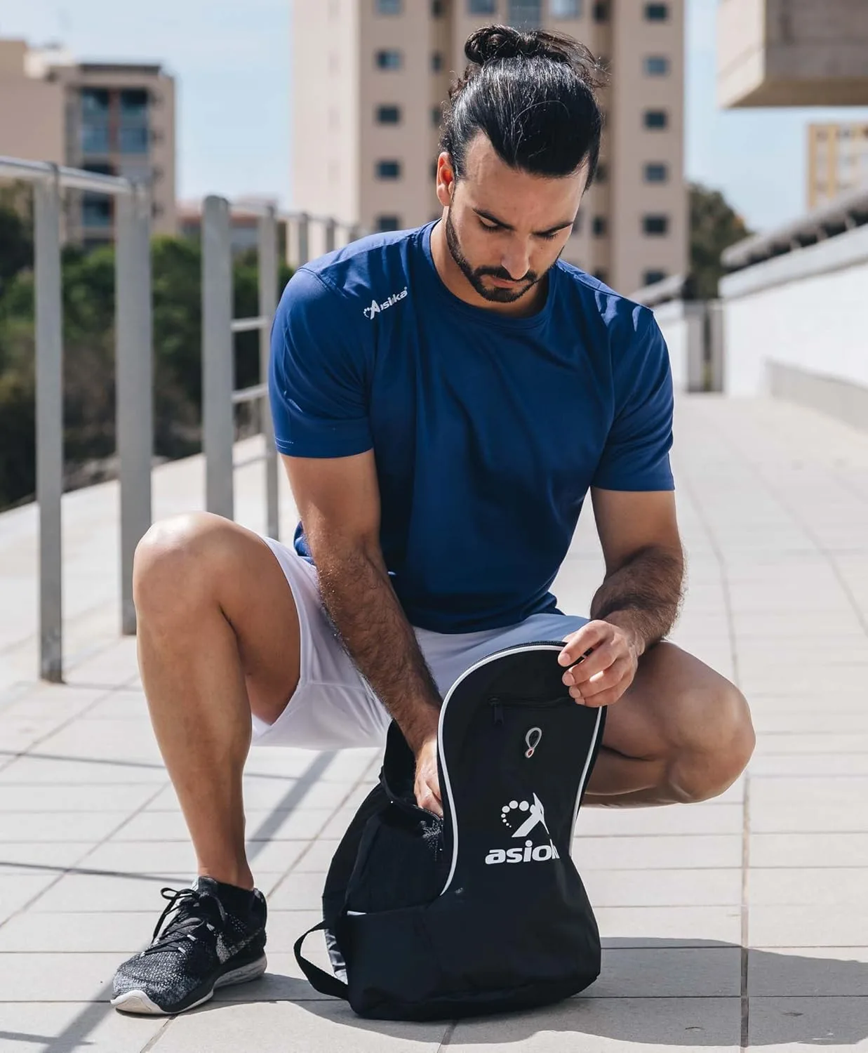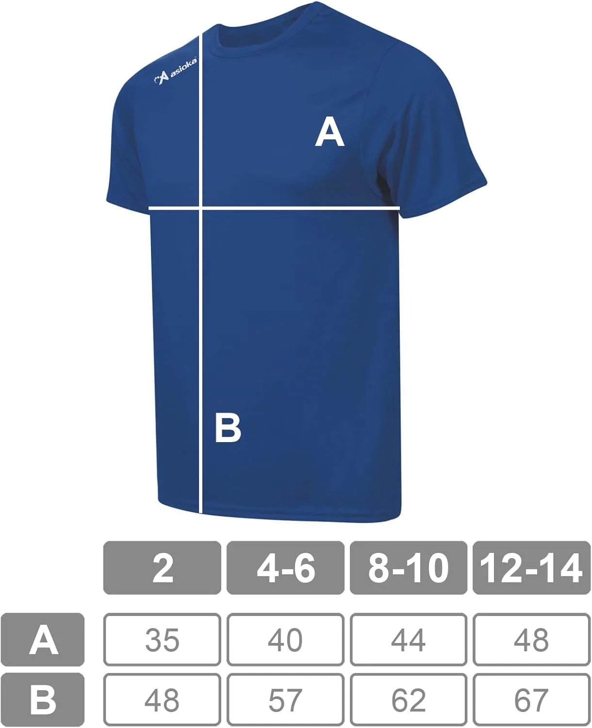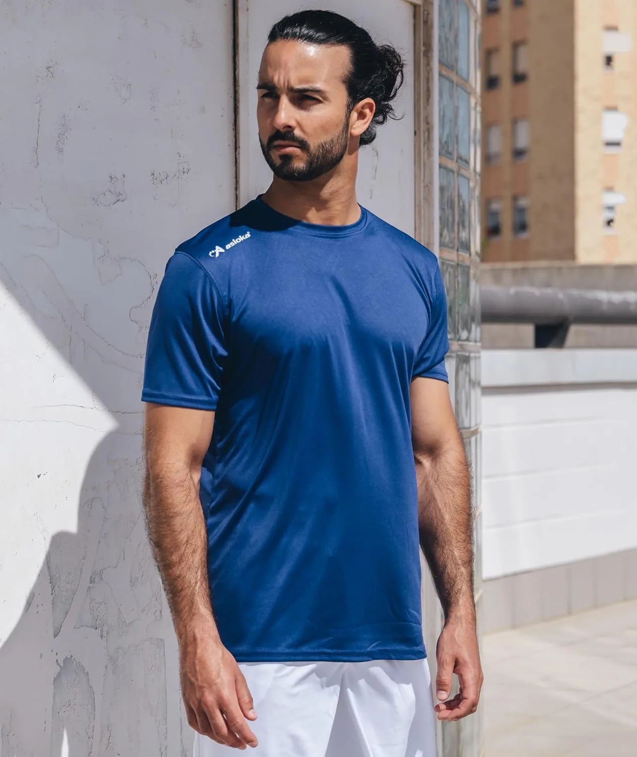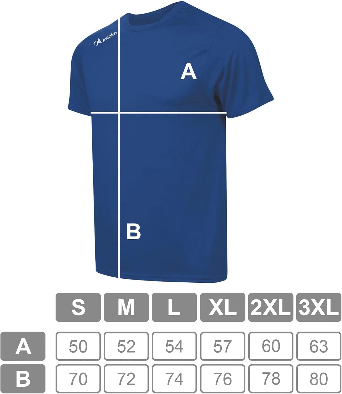 Camiseta deportiva lisa para adultos con el logo serigrafiado ASIOKA en el hombro.
