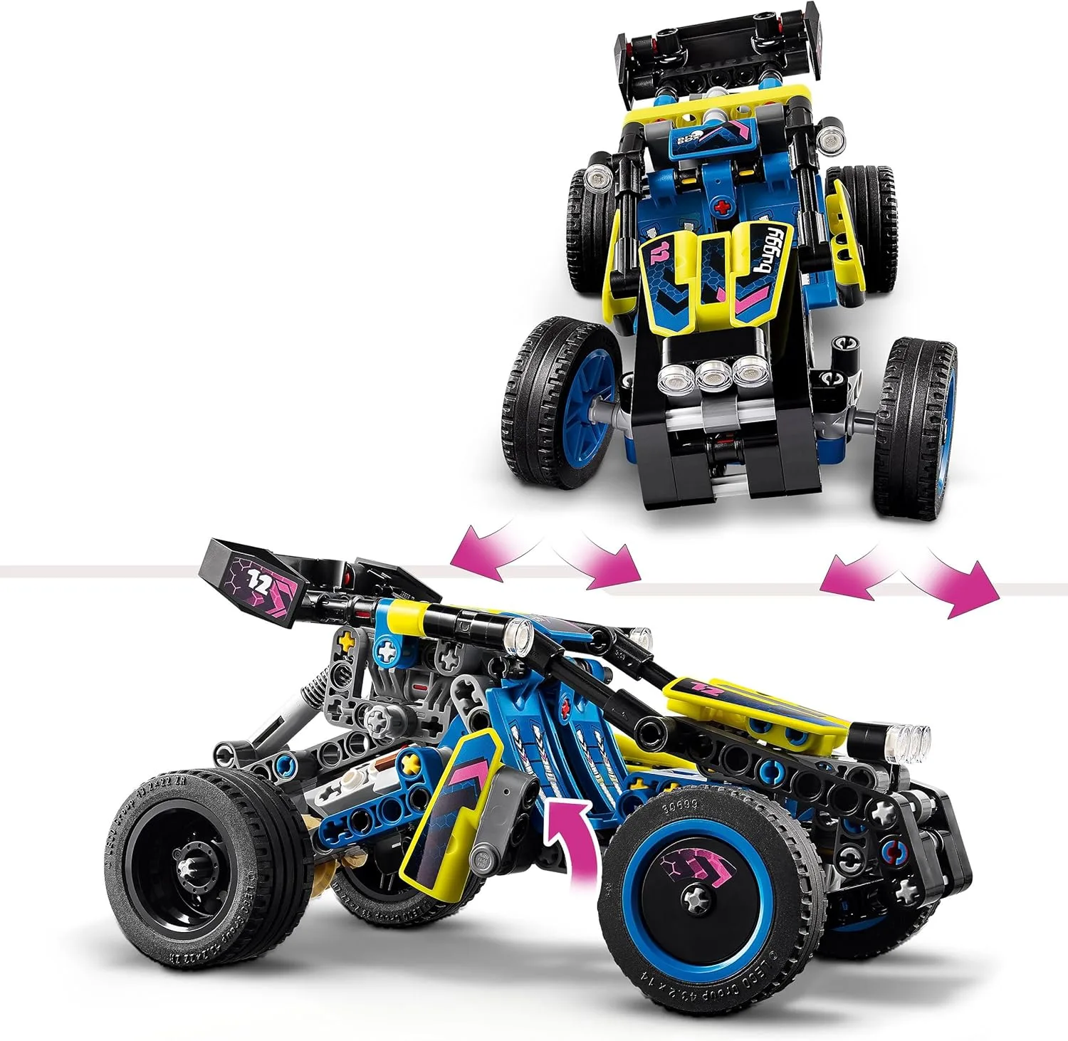 Un juguete de construcción para niños y niñas de 8 años o más: los pequeños entusiastas de los vehículos de juguete y los coches de carreras se lo pasarán muy bien construyendo el Buggy de Carreras Todoterreno LEGO Technic y jugando con él