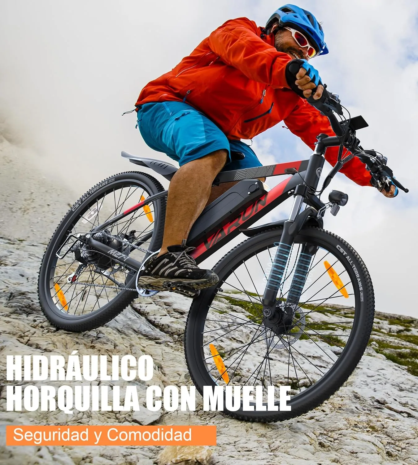 𝐁𝐚𝐬𝐭𝐢𝐝𝐨𝐫 𝐲 𝐀𝐦𝐨𝐫𝐭𝐢𝐠𝐮𝐚𝐝𝐨𝐫𝐞𝐬 𝐝𝐞 𝐀𝐥𝐮𝐦𝐢𝐧𝐢𝐨: El cuadro de esta ebike electrica es de aleación de aluminio ligero y resistente, pesa sólo 23 kg, y la estructura triangular del diseño del cuadro refuerza la estabilidad de la bicicleta, que puede soportar hasta 150 kg de peso. El sistema de amortiguación de la horquilla delantera le permite circular suavemente por carreteras bacheadas y disfrutar de una cómoda experiencia de conducción