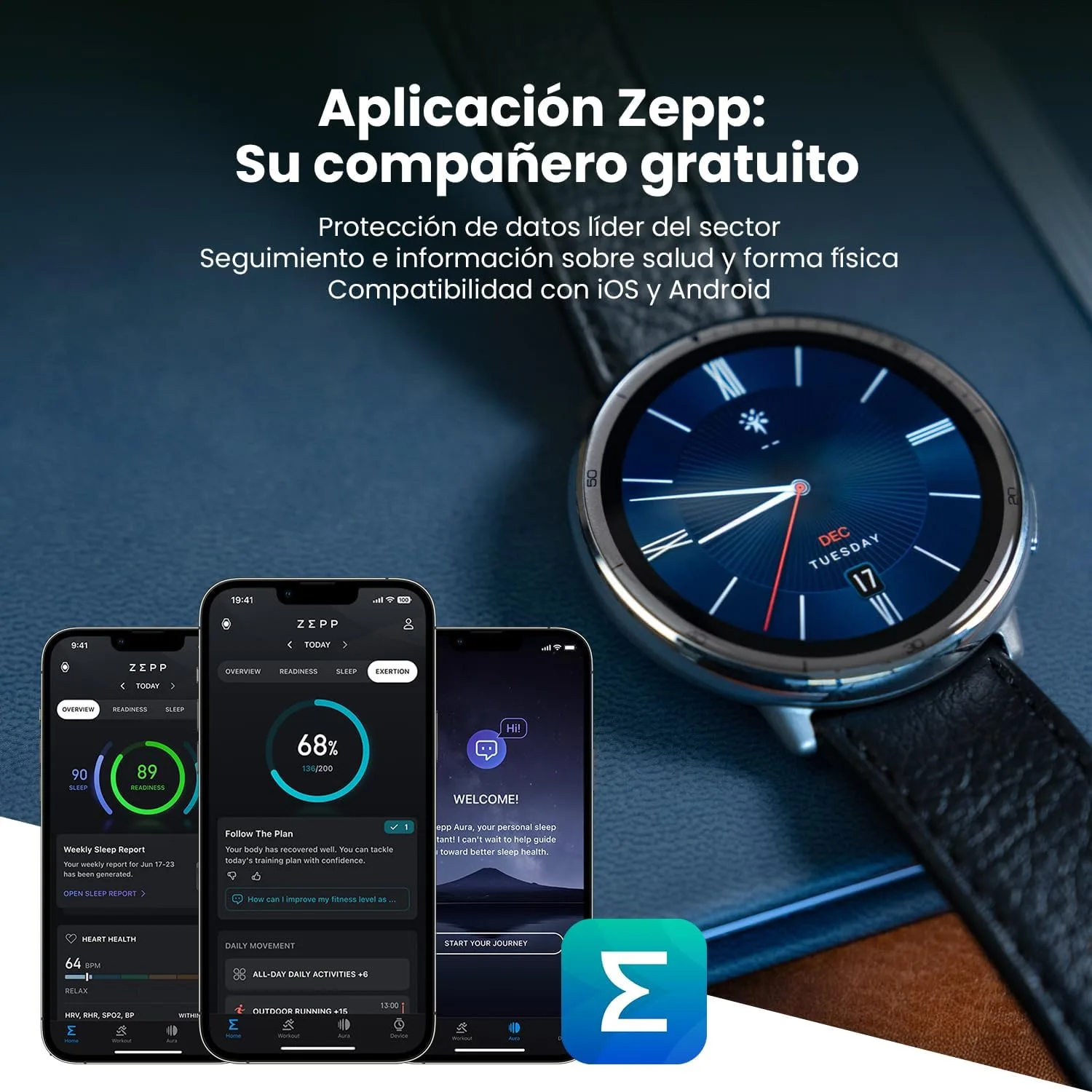 El reloj funciona muy bien. La configuración se realiza muy rápido con la aplicación Zeep. La medición de pasos, pulsaciones, sueño… y otros valores es bastante precisa, así como el seguimiento en los modos deportivos.