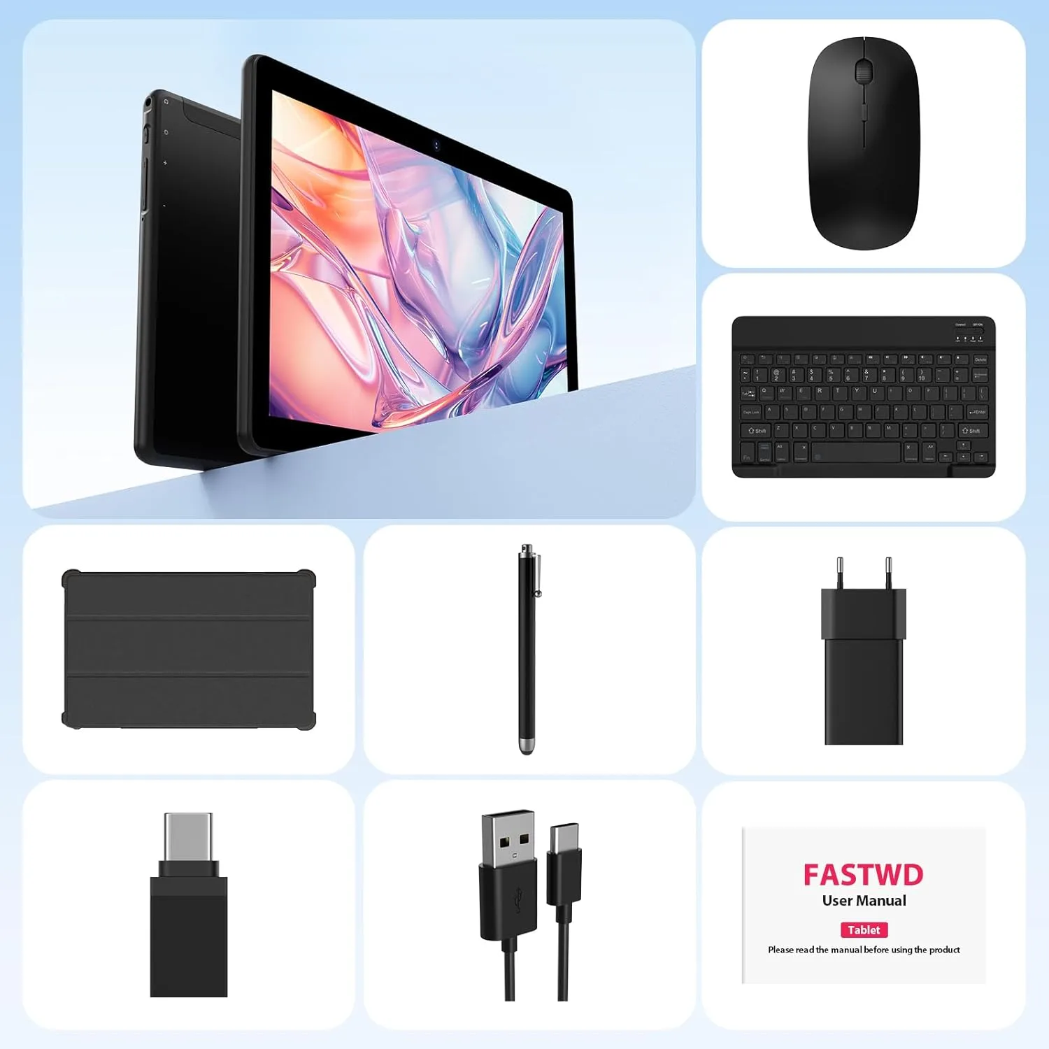 🎁Ricos regalos y servicio postventa perfecto 🎁ofertas de tablet 10 pulgadas viene con un ratón, un teclado bluetooth, un lápiz táctil, un dispositivo de carga, una funda de cuero, es el regalo perfecto para sus amigos y familiares.FASTWD tableta 10 pulgadas viene con una garantía de dos años, si encuentra algún problema después de comprar nuestros productos. Cualquier problema, póngase en contacto con el servicio al cliente del equipo FASTWD a través de Amazon.