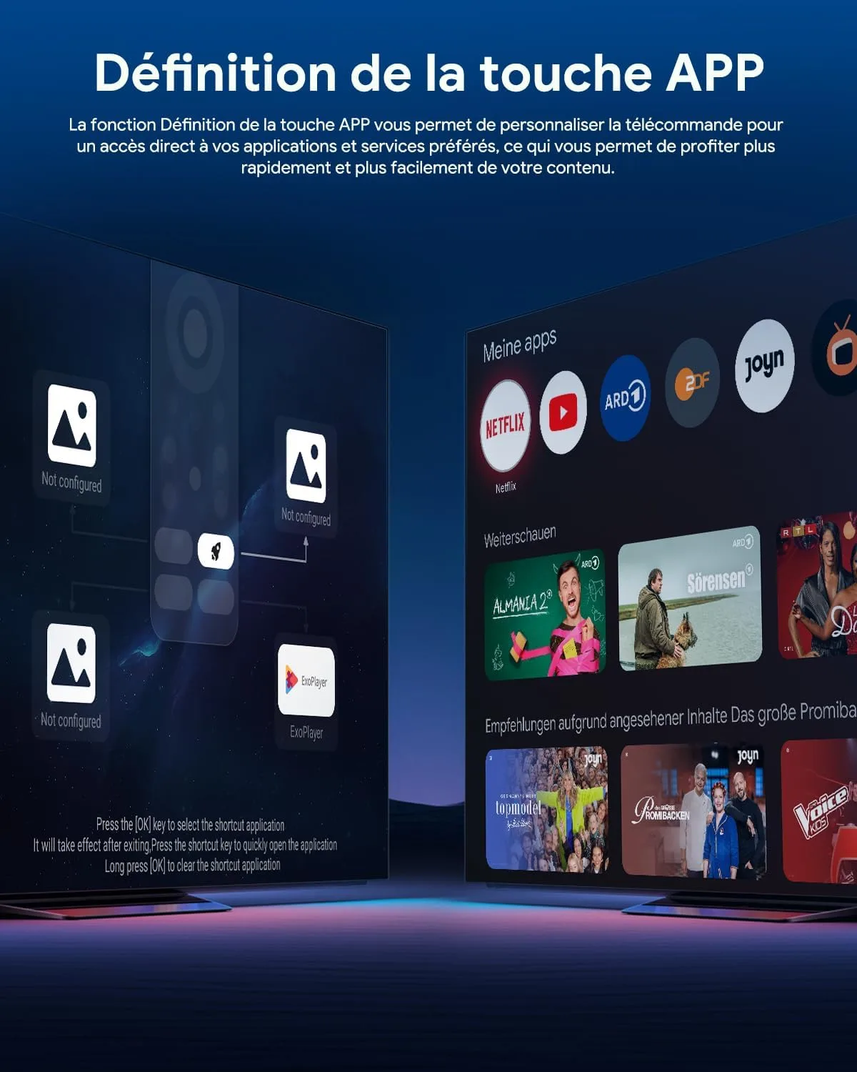 【Control Inteligente Mediante Voz】TV BOX Android pídele a Google que busque películas, transmita aplicaciones, reproduzca música y controle el televisor, todo con tu voz. Solo tienes que decir «Ok Google» o pulsar el botón del Asistente de Google en el mando a distancia para empezar.