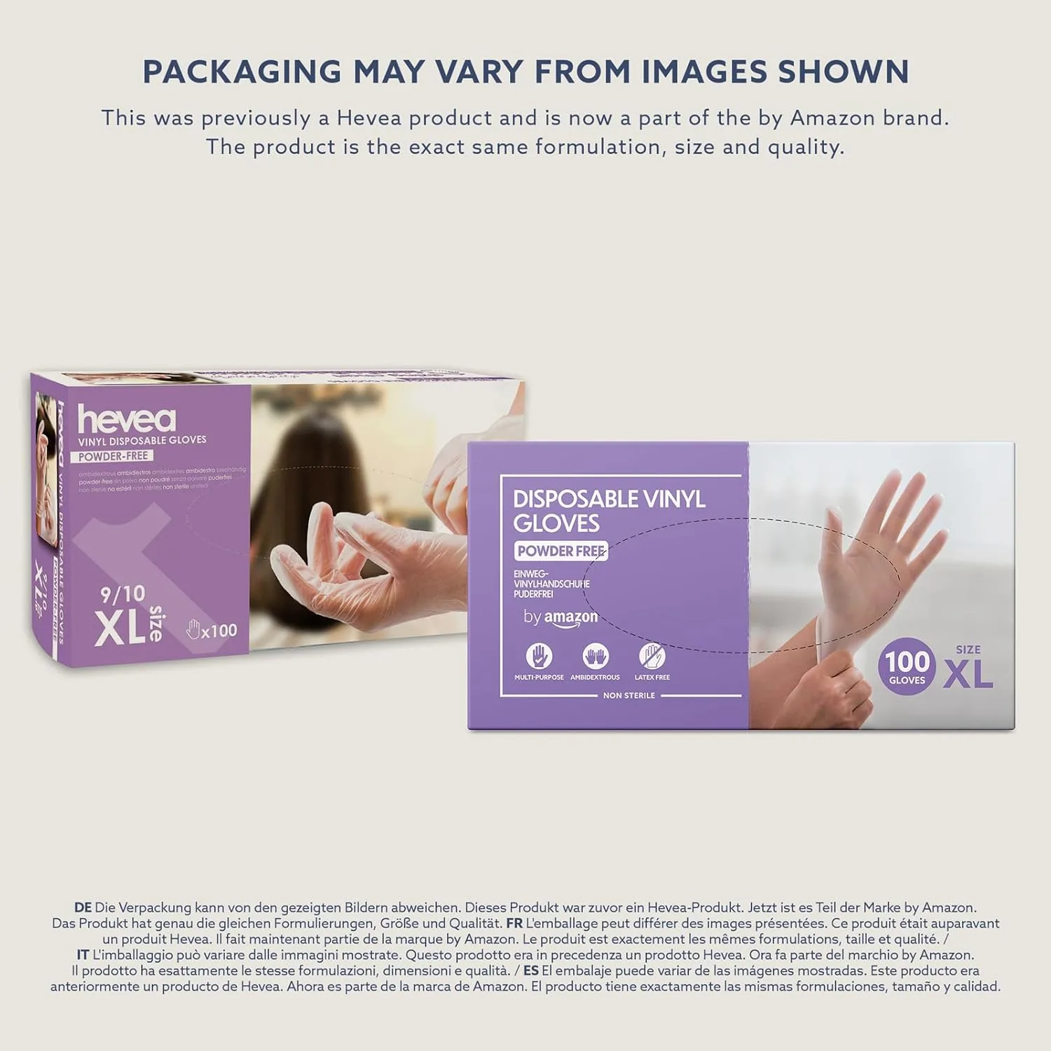 by Amazon – Guantes desechables de vinilo, Talla XL, Paquete de 100, Transparente