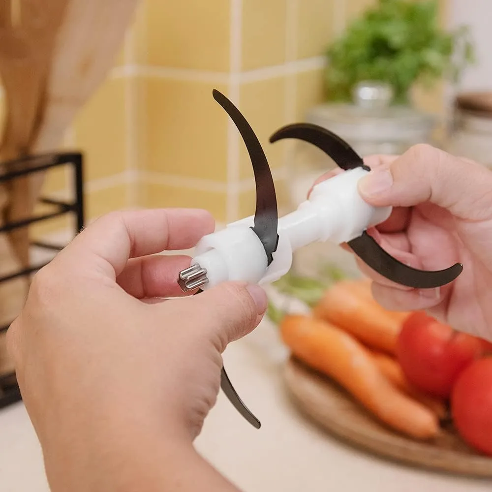 Picadora eléctrica de 600 W para picar, trocear y cortar todo tipo de carne y verdura con resultados profesionales, rápidos y uniformes. Cuchilla de 4 hojas con recubrimiento de titanio negro, que aumenta la dureza y mantiene el afilado durante más tiempo para triturar hasta los alimentos más duros.