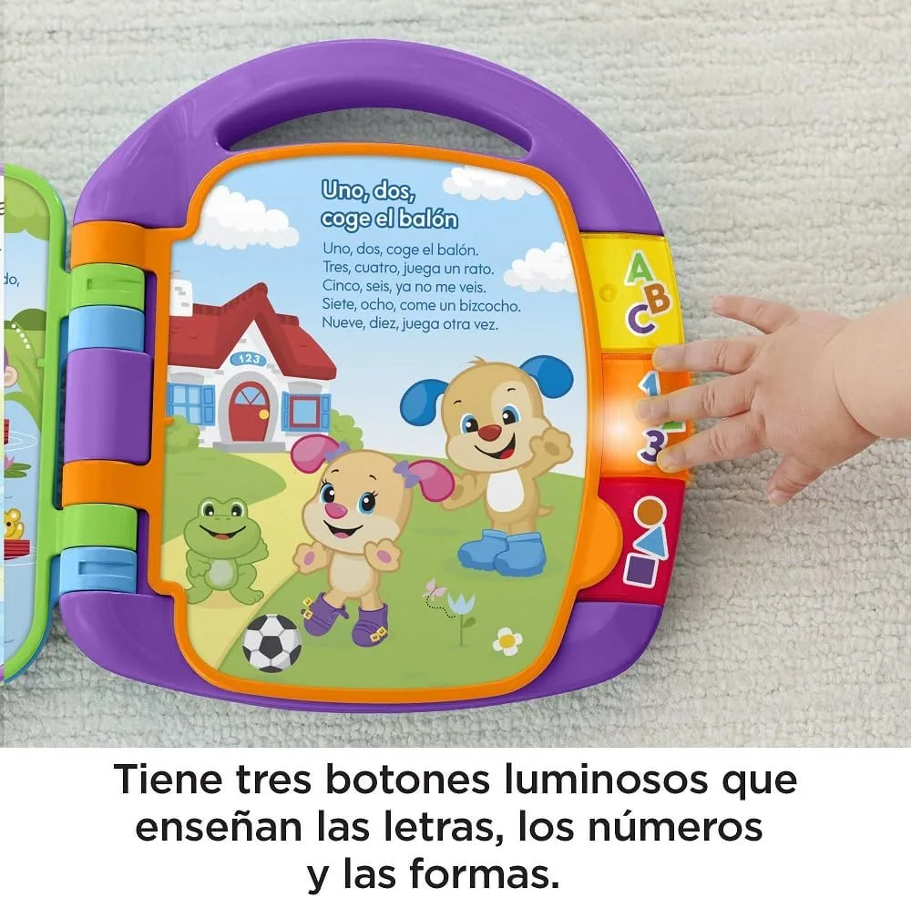 Incluye tres botones luminosos con letras, números y formas.