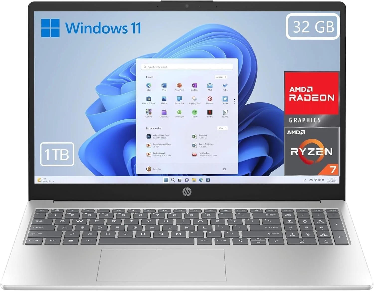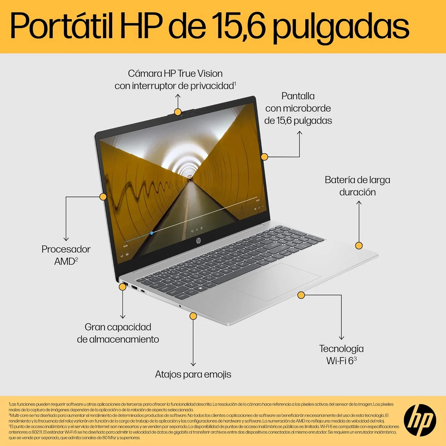 HP 15-fc0243ns – Ordenador portátil de 15.6″ FHD AMD Ryzen 7-7730U, 32 GB RAM, 1000 GB SSD, AMD Radeon Graphics, Windows 11, Copilot+PC Plata – Teclado QWERTY Español, 32GB, 1000GB