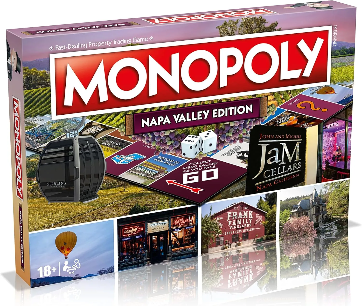 Descubre el Valle de Napa a través del Monopolio: explora los sitios icónicos y las gemas ocultas del Valle de Napa en esta edición especial. Estrategiza y negocia tu camino hacia el éxito en un juego que refleja el verdadero espíritu de Napa Valley.