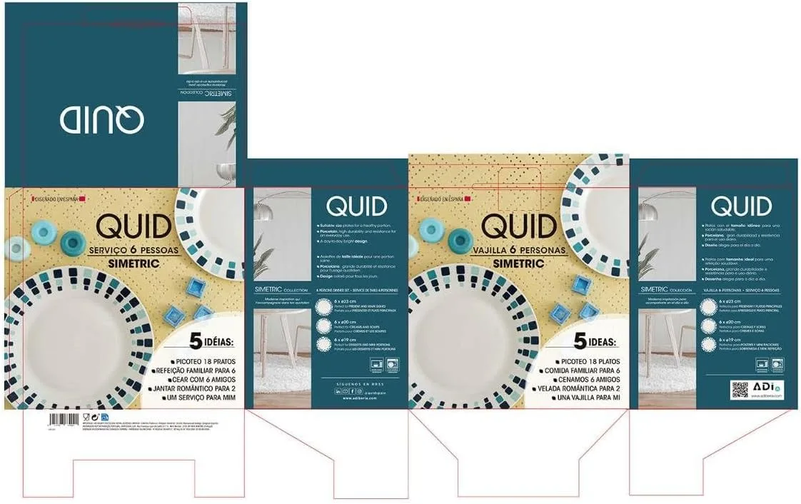 Quid Simetric Vajilla Porcelana 18 Pieces -6 People Blanco, Único