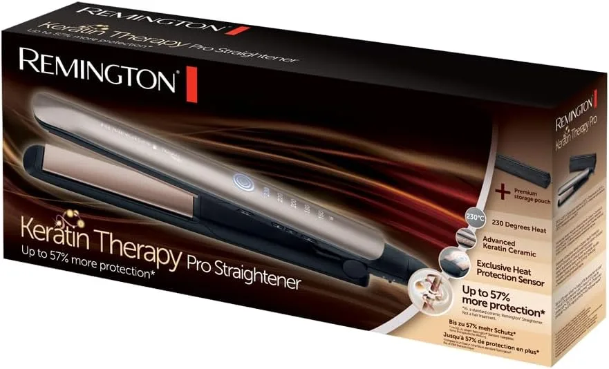 Remington Keratin Therapy Pro S8593 – Plancha de pelo profesional, cerámica, queratina, aceite almendras, digital, 5 ajustes temperatura, color bronce.
