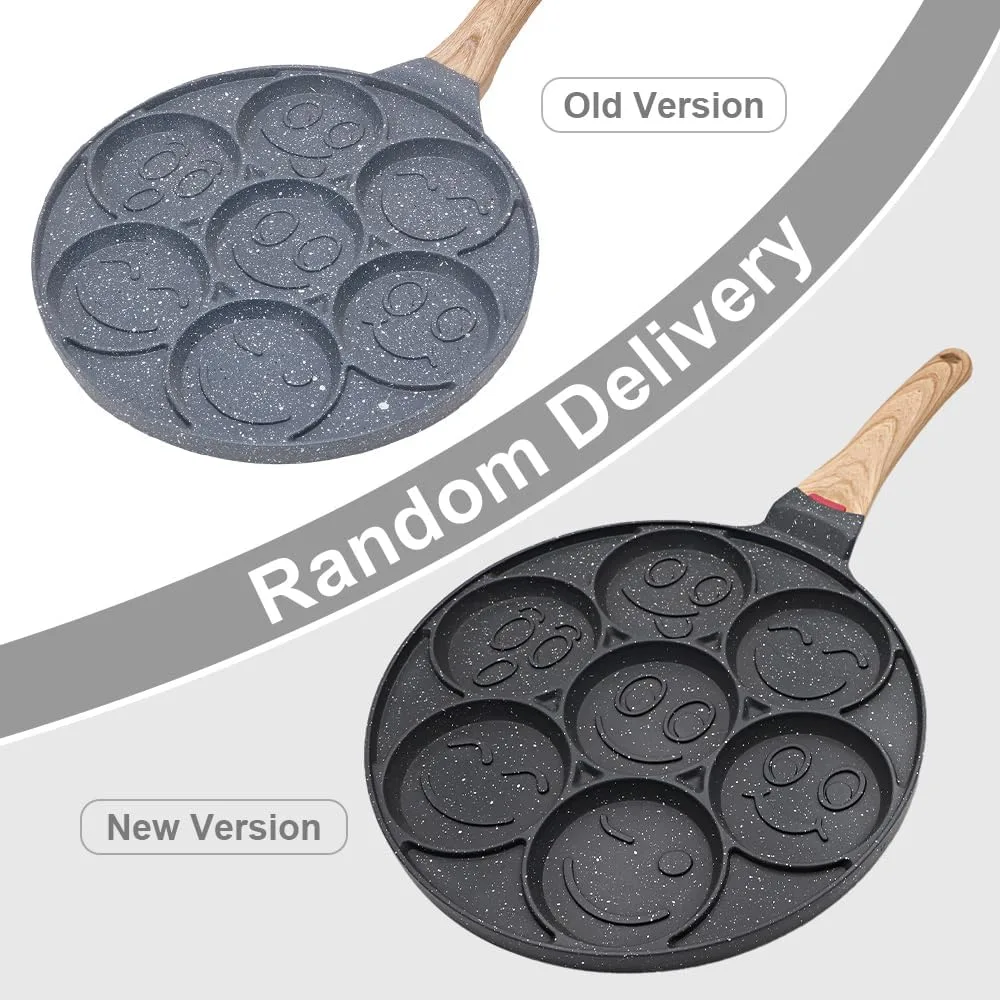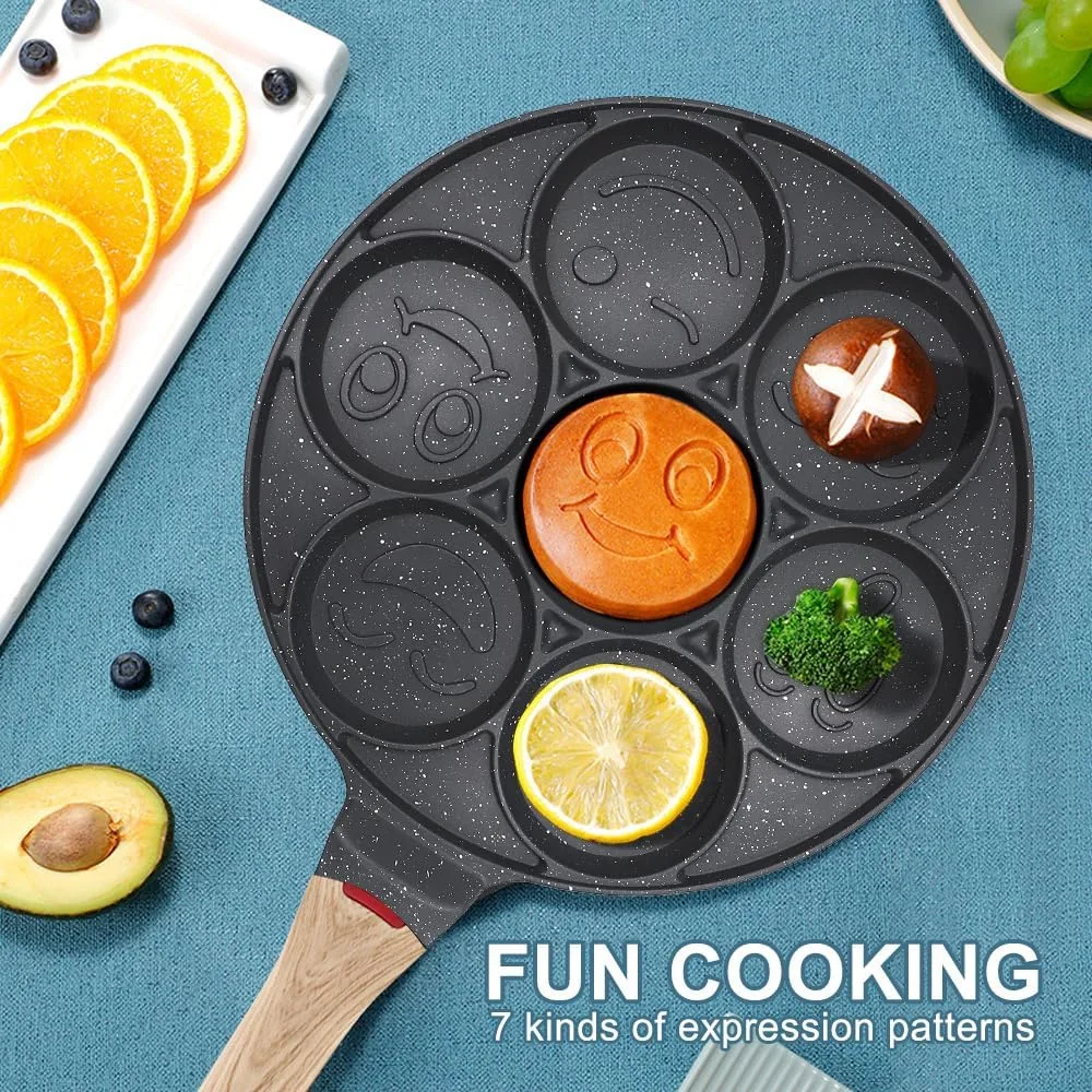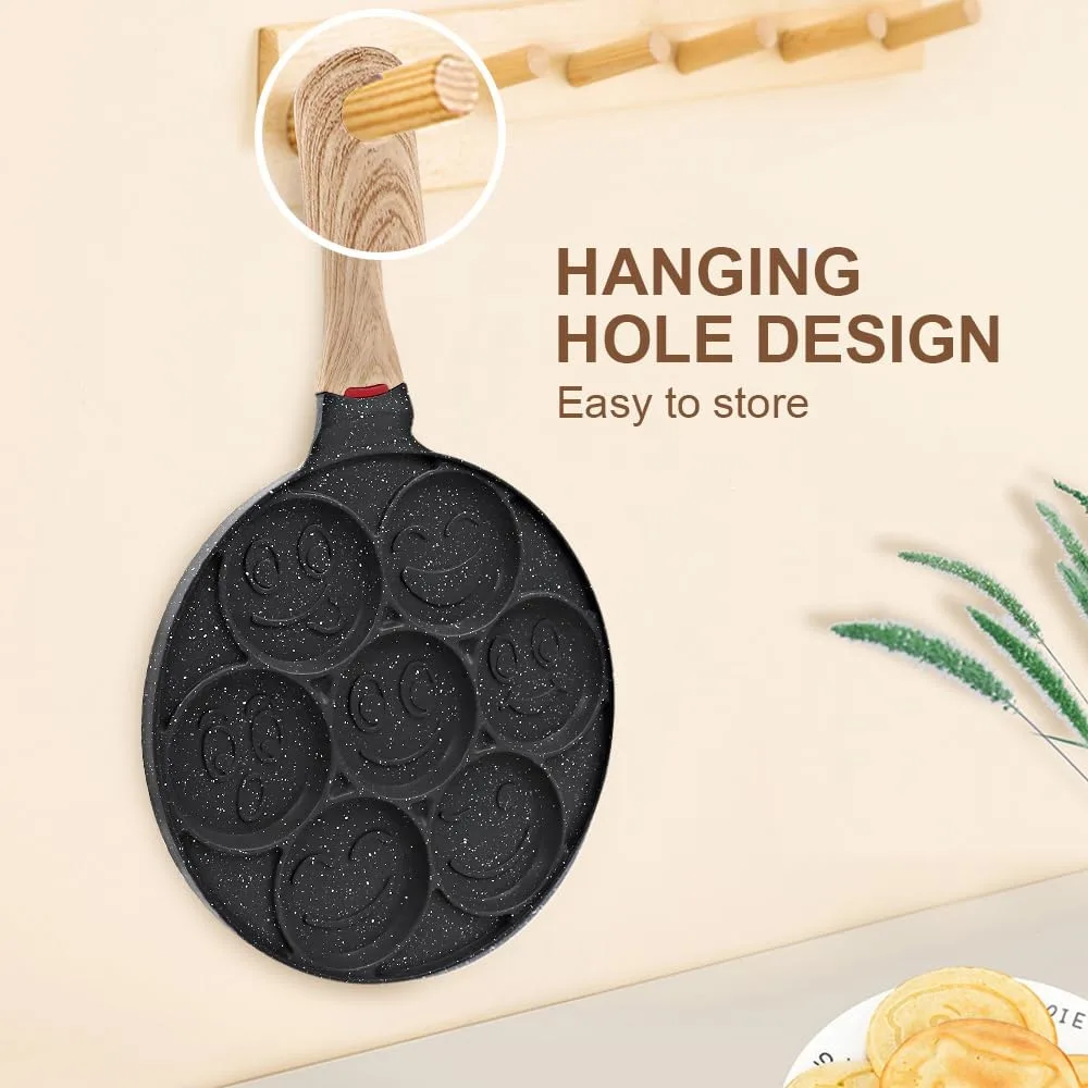 Sarten para Tortitas Smiley, Molde Tortitas Antiadherente 7 Agujeros Sartén para Crepés de Desayuno para Niños 26 cm – Negro