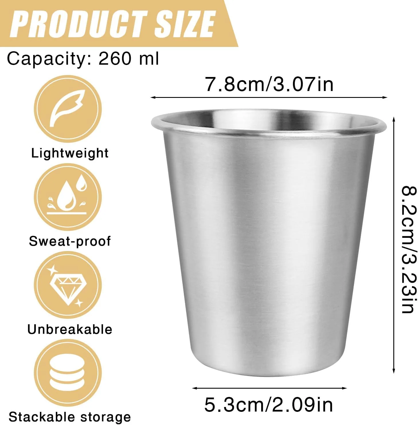 Stainless Steel Cups, 8 Piezas 260ML Taza Acero Inoxidable, Camping Vasos sostenibles e irrompibles de Cerveza sin BPA, Apilable y Reutilizable para Caminatas, Campamentos y Festivales De Fiesta