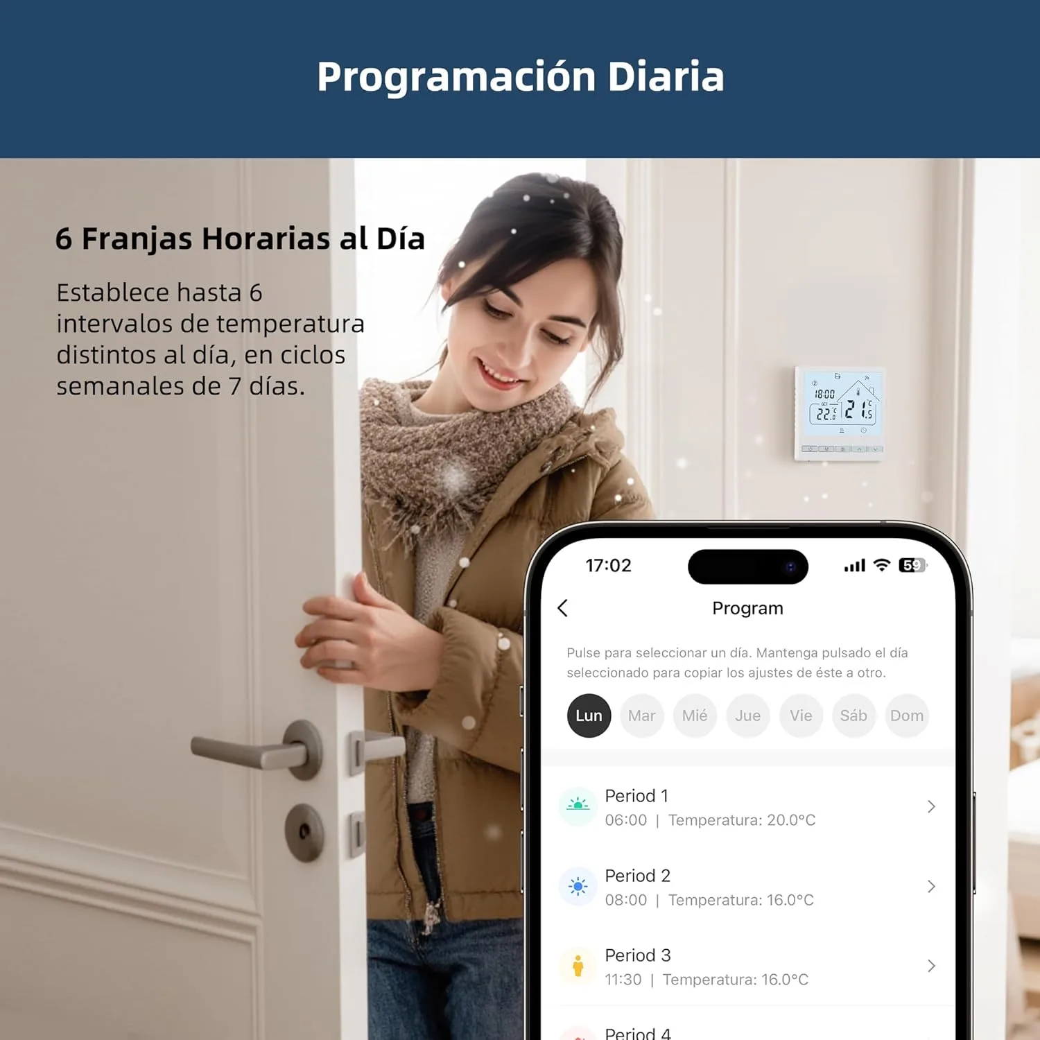 La programmation via l'application Tuya Smart est intuitive, et le fait de pouvoir définir six plages horaires différentes pour chaque jour est très pratique pour s'adapter à nos habitudes de vie. La compatibilité avec Alexa et Google Home est la cerise sur le gâteau. 🍒 C'est un vrai confort de pouvoir ajuster la température juste à la voix, surtout le matin avant de se lever.