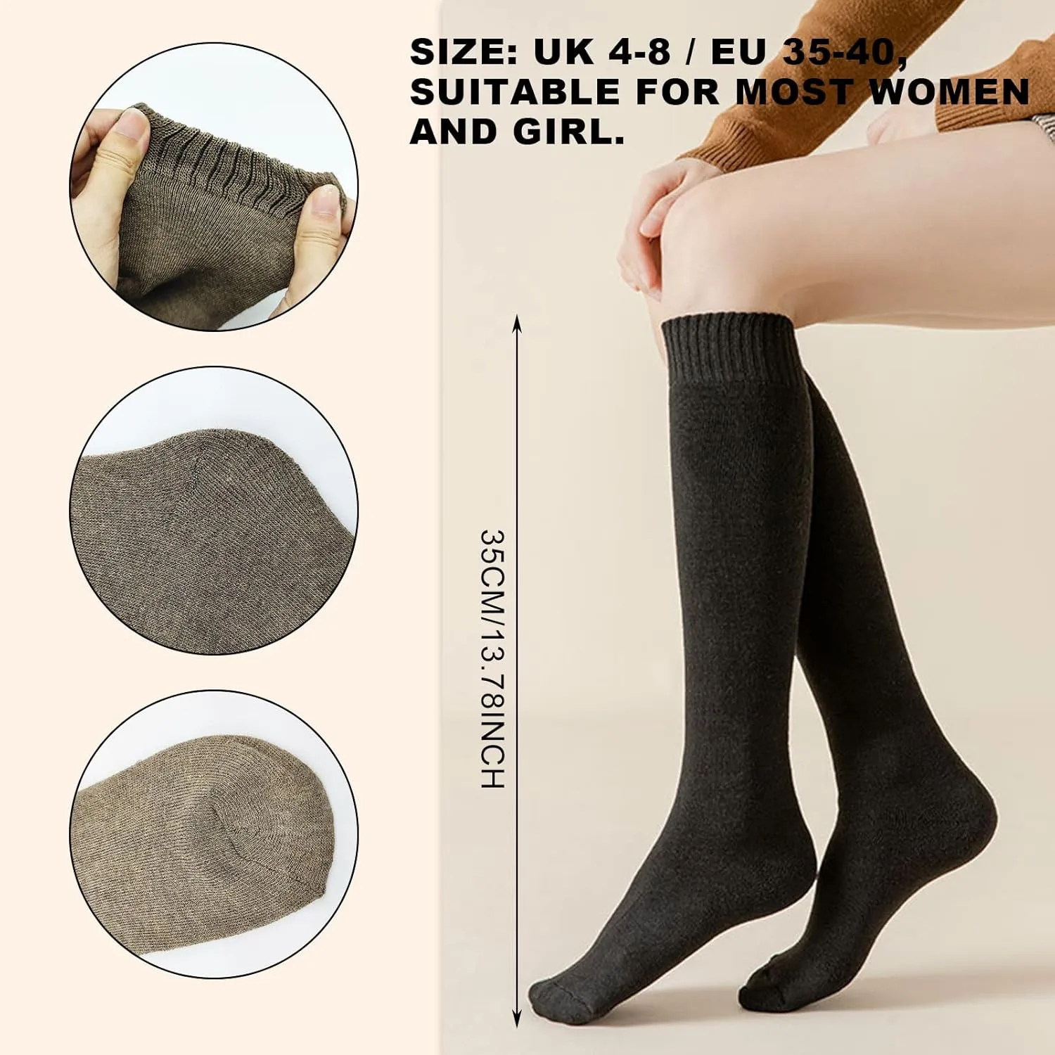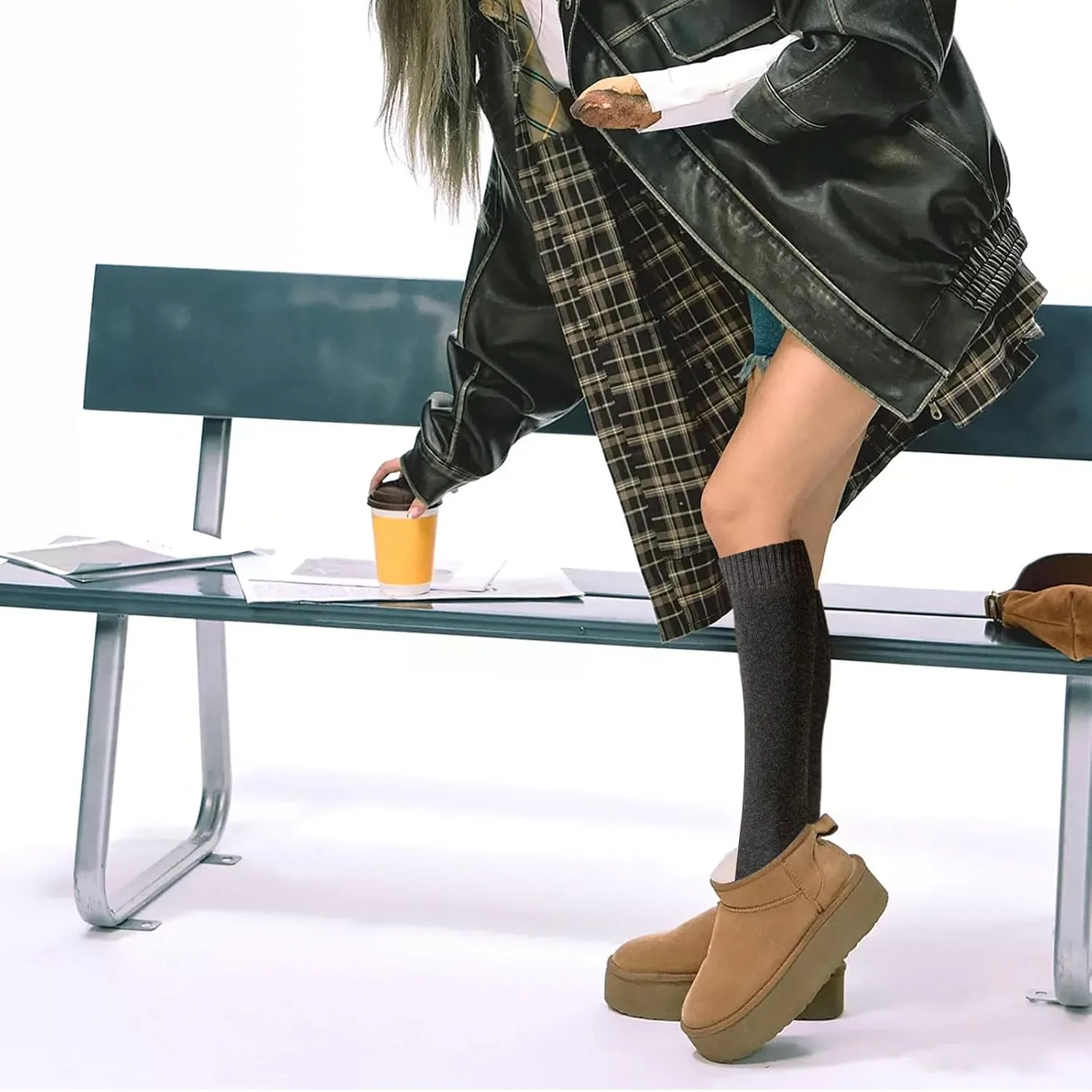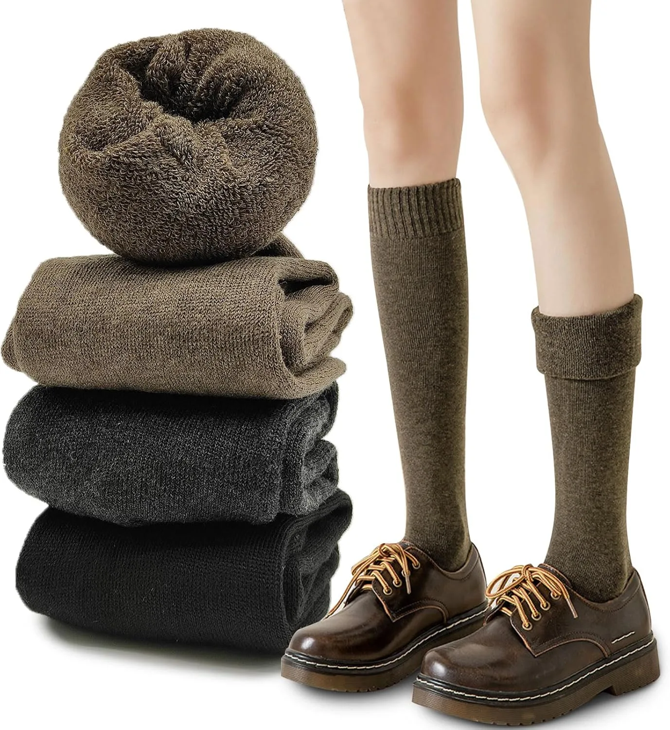 1. Mantente cómodo y elegante durante todo el invierno con nuestros calcetines extralargos para mujer.