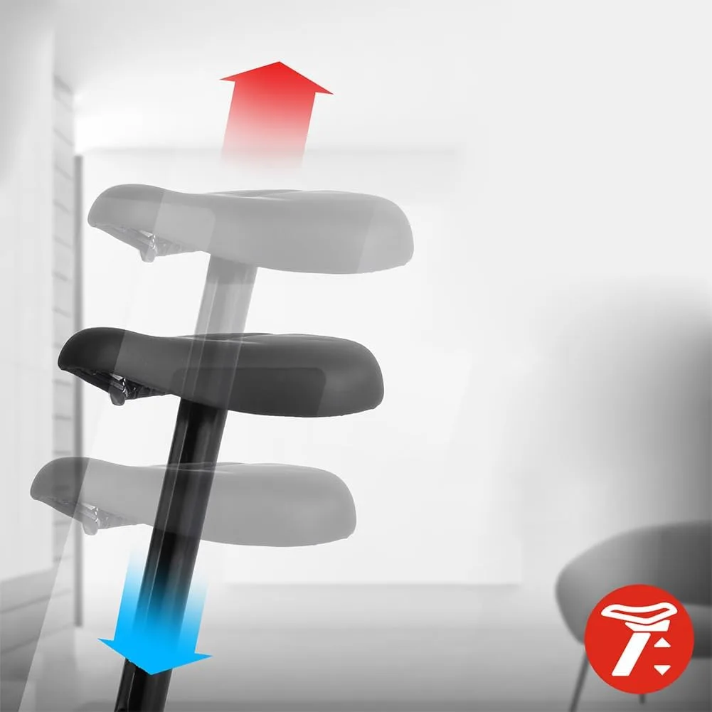 La bicicleta estática está fabricada con un sólido marco de acero inoxidable con recubrimiento en polvo y está equipada con un cómodo asiento con respaldo fabricado íntegramente en espuma de goma que garantiza una excelente comodidad de uso incluso durante largas sesiones de entrenamiento, además el asiento es ajustable adaptándose perfectamente a todas las alturas.