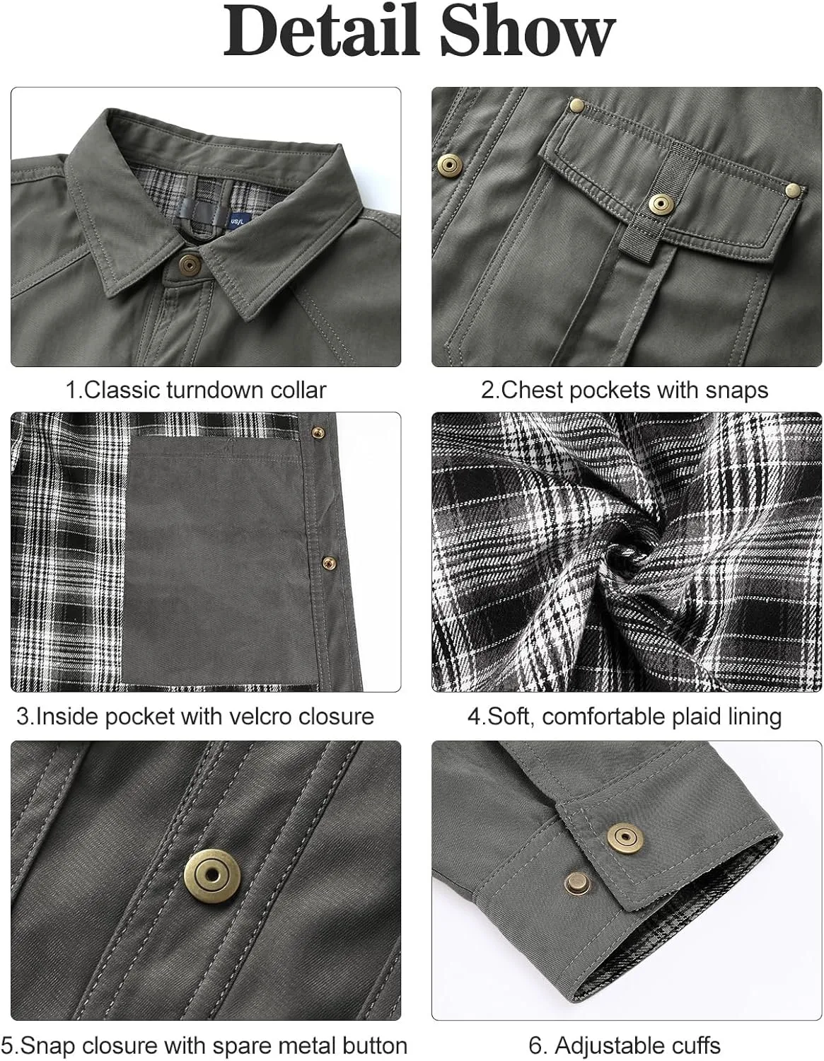 Detalles prácticos: Cierre con botones en la parte delantera para ponérsela y quitársela fácilmente. Diseño multibolsillos (2 bolsillos en el pecho, 2 bolsillos con aberturas, 1 bolsillo interior) que facilita llevar objetos pequeños como teléfonos móviles, carteras, llaves, etc.