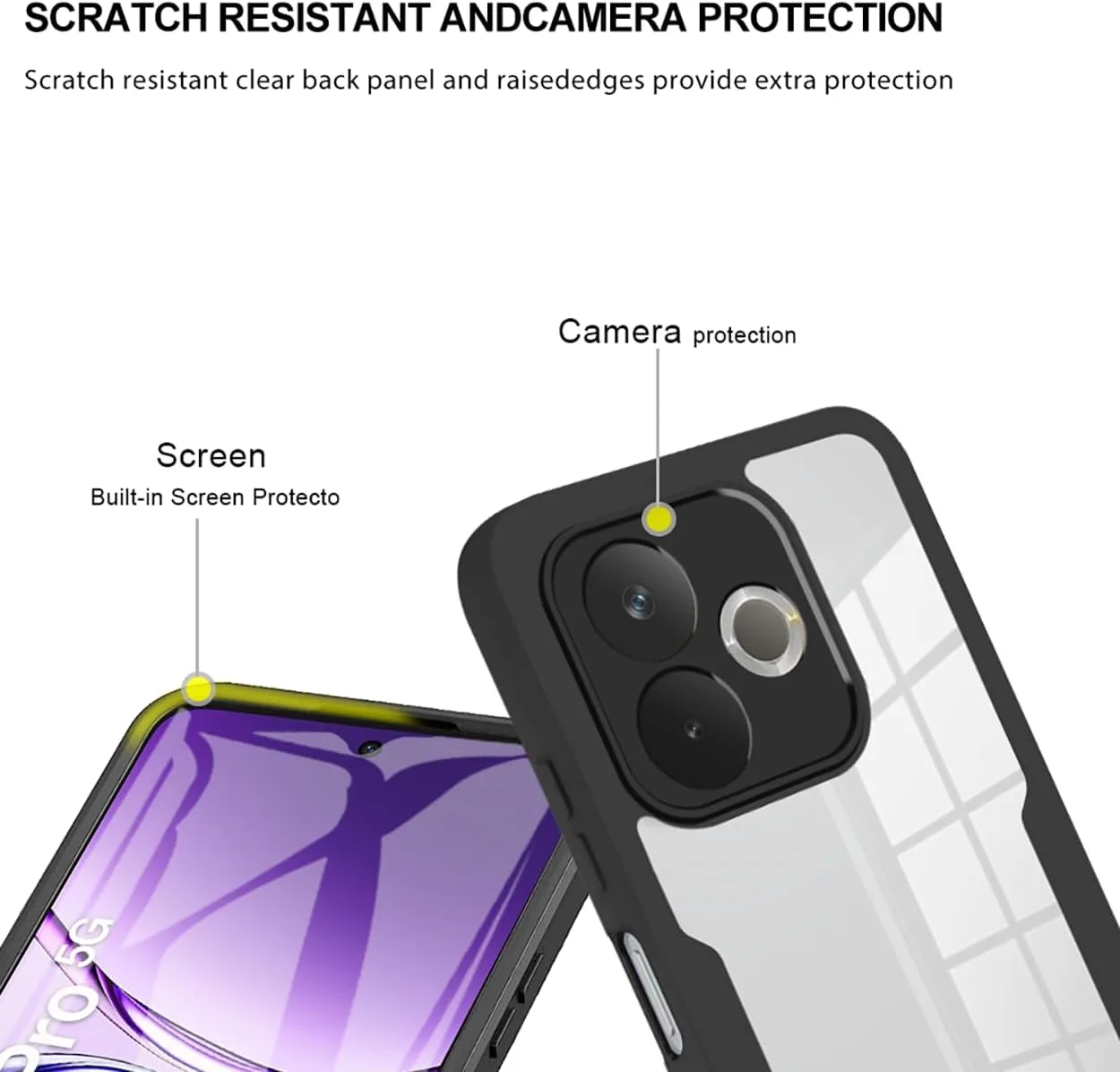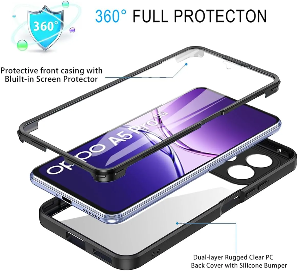 [Protección sistémica] Construido en un protector de pantalla de plástico de alta definición, una carcasa delantera y trasera clara proporciona protección de 360° y una combinación de tpu y policarbonato (PC) proporciona una doble protección contra choques para proteger su OPPO A5 Pro 5G de caídas y arañazos.