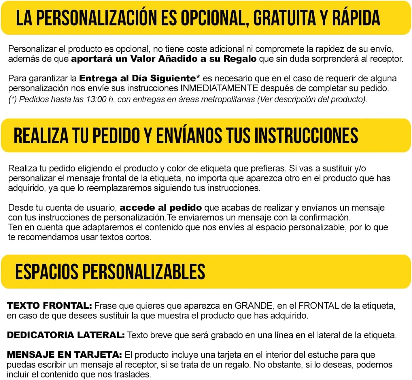 Puedes PERSONALIZAR el mensaje de la etiqueta con TU PROPIO MENSAJE o diseño, sin coste adicional.