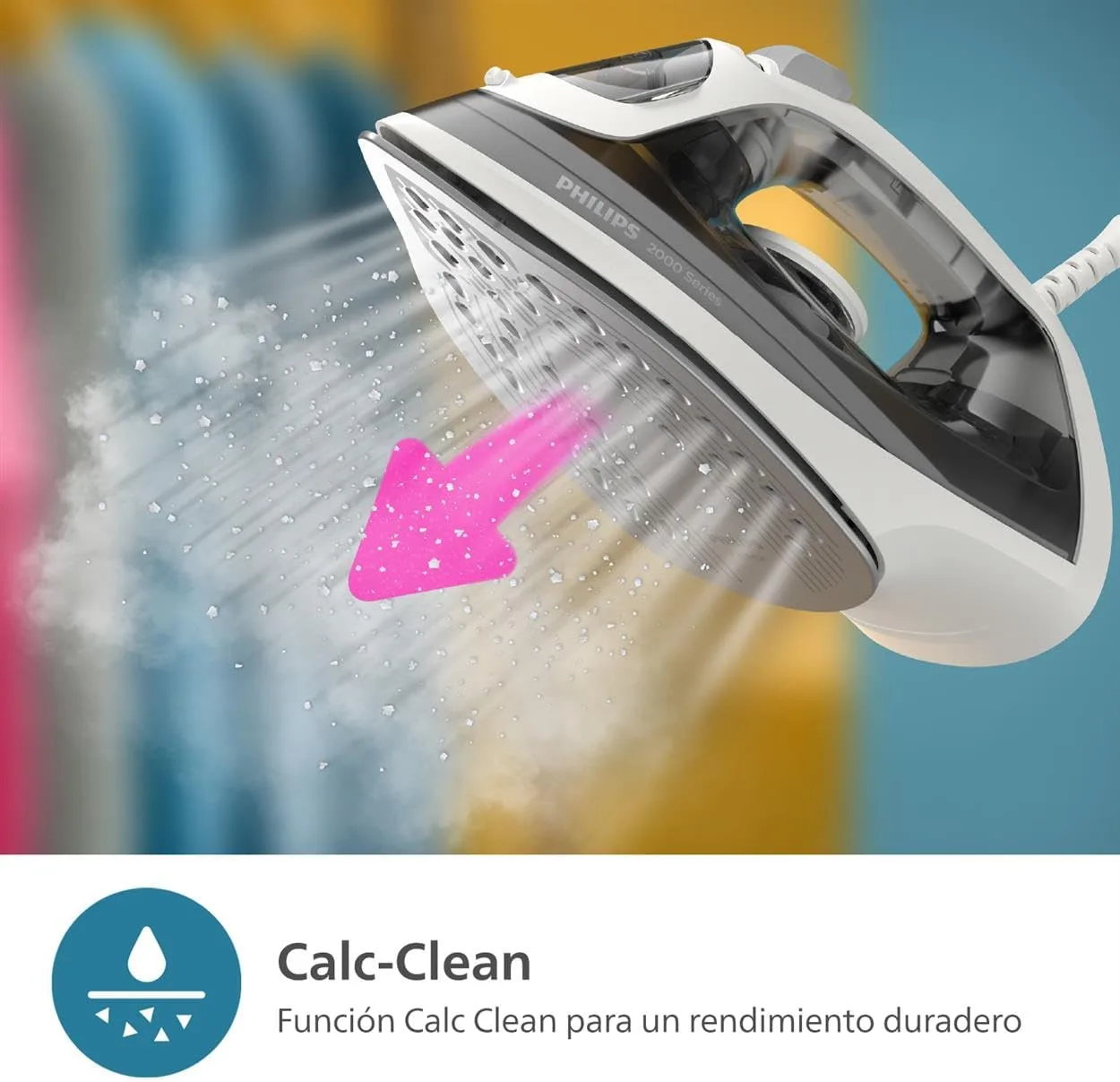 FUNCIÓN CALC CLEAN: Elimina fácilmente la cal para mantener la plancha en condiciones óptimas, garantizando un rendimiento duradero con agua corriente normal.