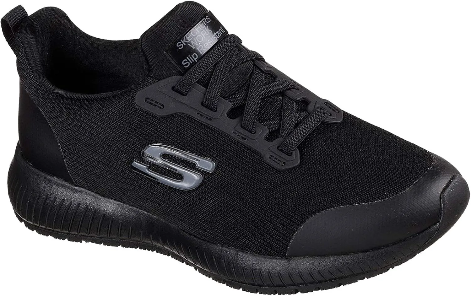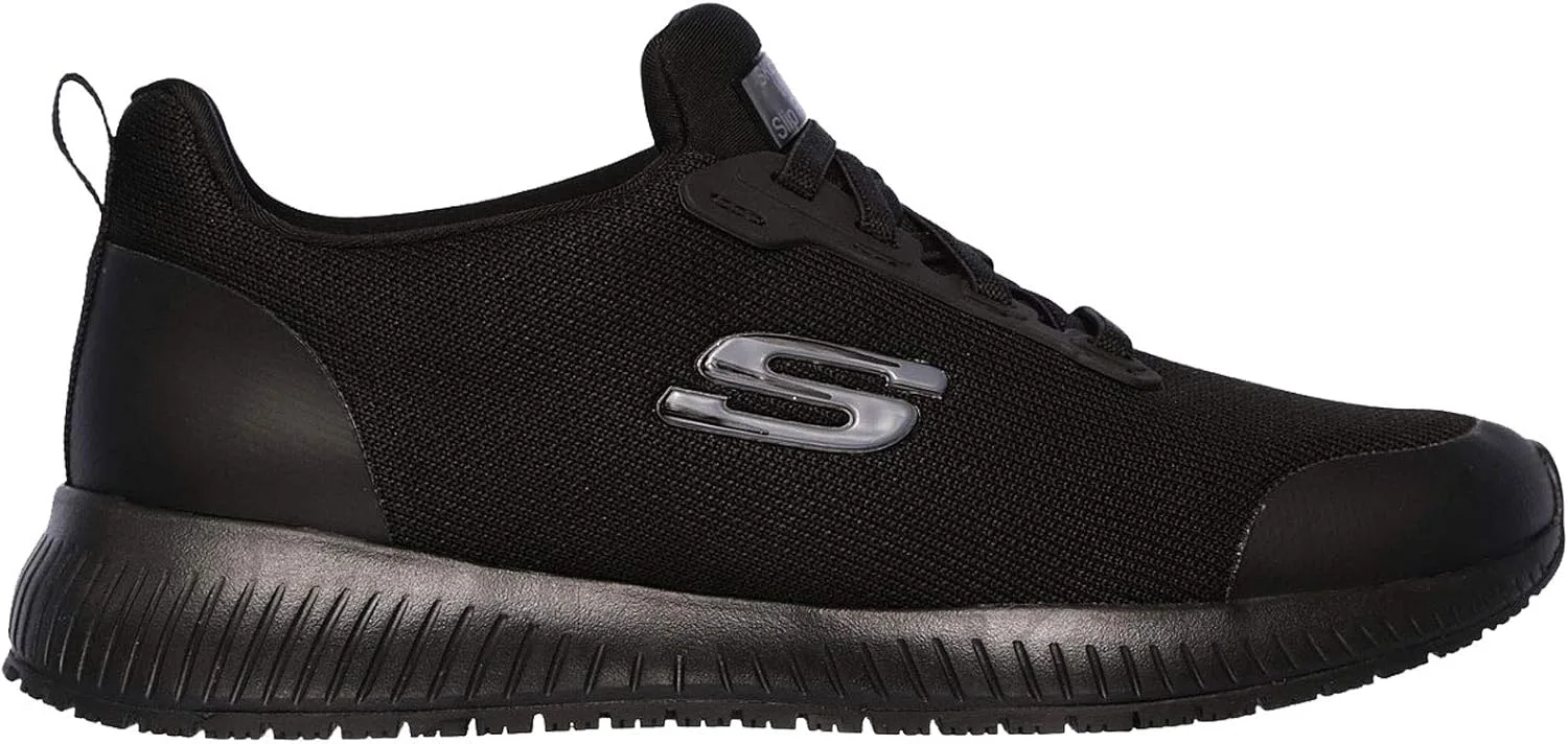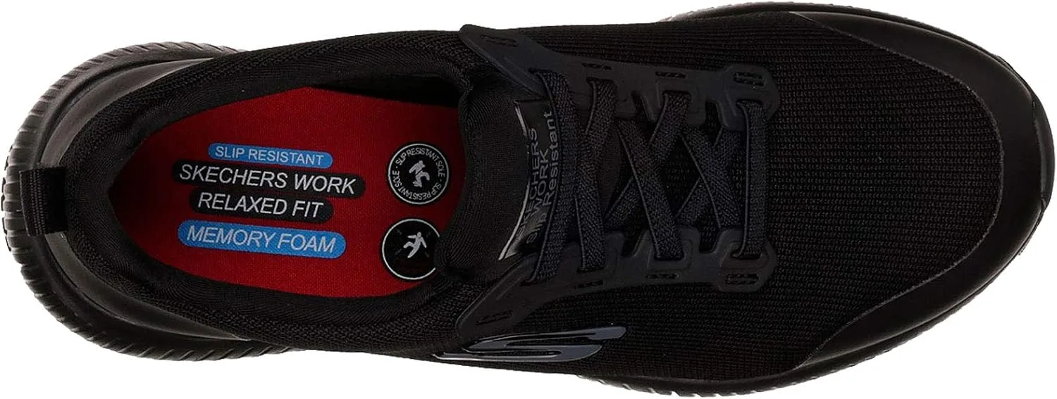La comodidad y la protección que también se ven muy bien vienen en el zapato SKECHERS Work: Squad SR. Tejido de malla de punto deportivo suave y parte superior sintética en una zapatilla deportiva con cordones elásticos y antideslizante para el trabajo con detalles de costura y plantilla de espuma viscoelástica.