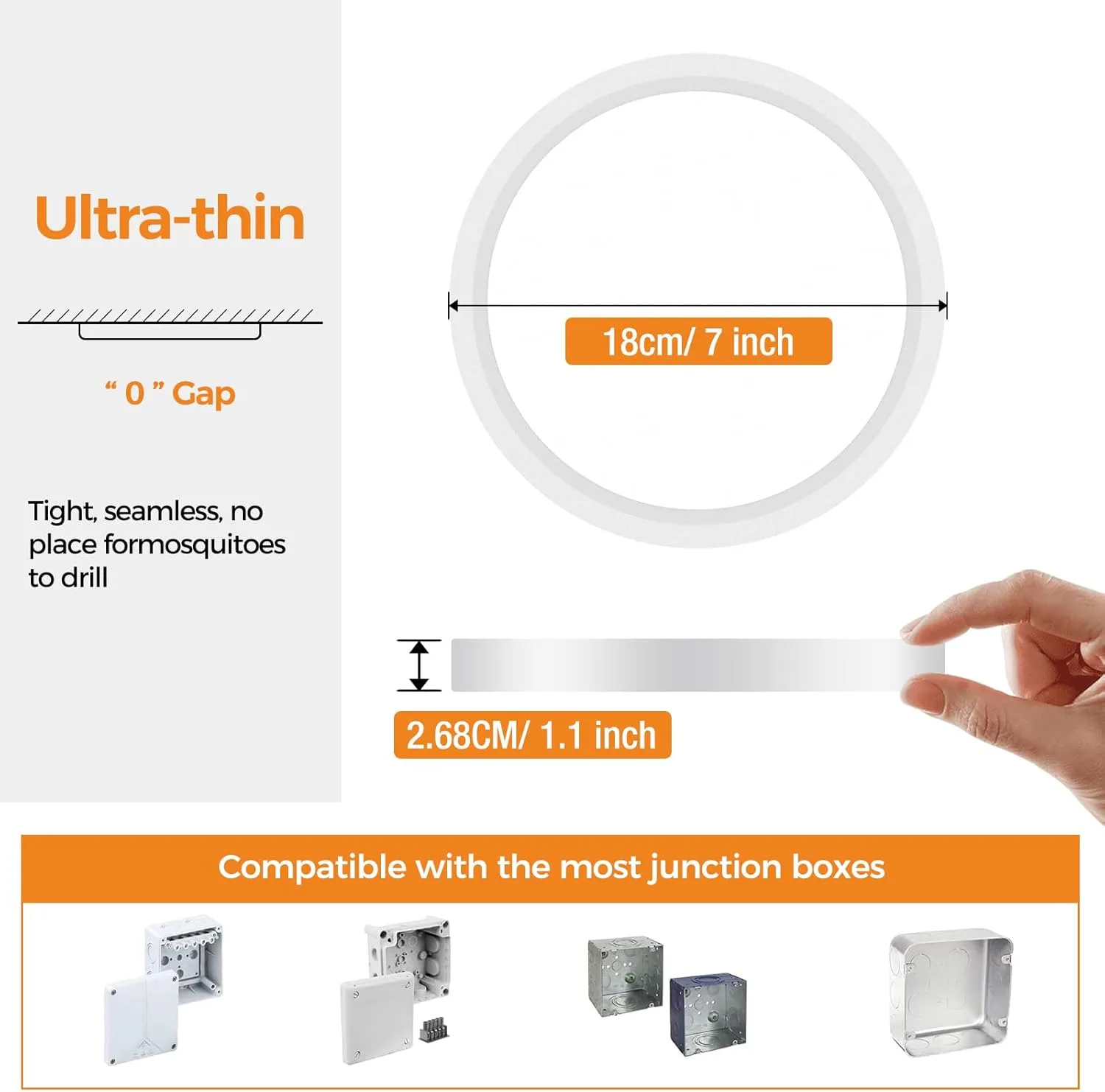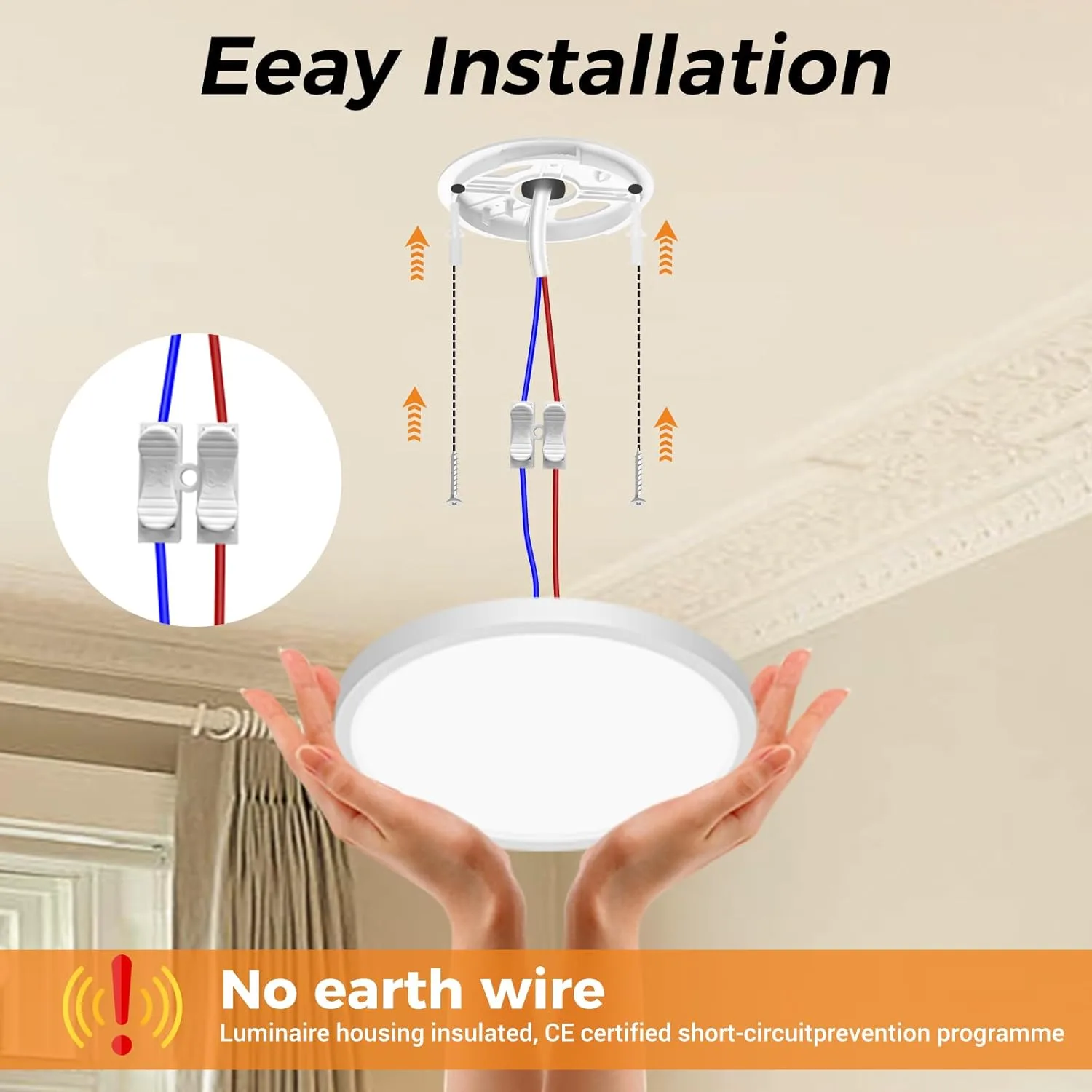 【Fácil de instalar y ultrafina】Lampara techo LED ultrafina de 1 pulgadas se puede instalar a ras de cualquier techo y el diseño de base fácil de usar se adapta al 99% de todas las cajas de conexiones. No hay necesidad de conectar un cable de tierra o contratar a un electricista,y una sola persona puede completar la instalación.