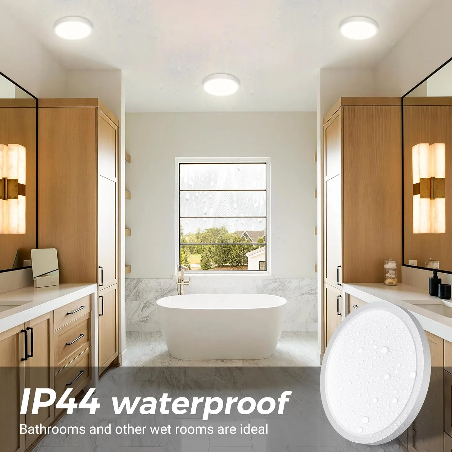 【Protección ocular e IP44 impermeable】CRI>80 asegura que obtenga una experiencia de iluminación real y vívida en casa. La luz no deslumbra y no parpadea, protegiendo sus ojos. La lampara baño tiene un diseño impermeable IP44 completamente cerrado para resolver el problema de iluminación en el baño. No aparecerán sombras ni puntos negros en el interior de la lámpara tras un uso prolongado,por lo que mantendrá un aspecto fresco durante muchos años sin necesidad de limpieza.