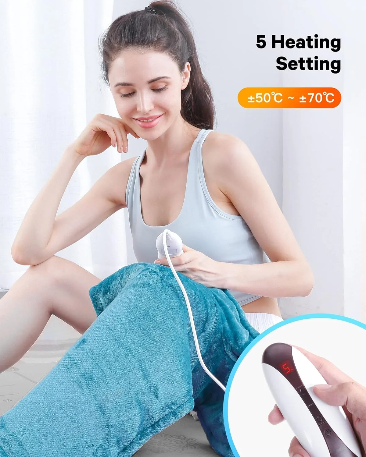 Ajustes De Calentamiento Rápido Y Temporizador: El controlador LED de la almohadilla térmica eléctrica tiene 5 ajustes de calor. La función de apagado automático de 60/120 minutos garantiza la seguridad y ahorra energía. El cable de alimentación extra largo le permite un movimiento adicional mientras usa la esterilla eléctrica para cervicales, hombros, cuellos y espalda