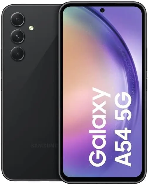 Alemania Con la pantalla FHD Infinity O de 16,31 cm y 6,4 pulgadas, puedes disfrutar de una vista exterior vívida y colorida que incluye contenido fluido con frecuencias de actualización de hasta 120 Hz. Cámara principal triple Capture grandes momentos en fotografías nítidas con la cámara principal de 50 MP. Capacidad de batería de 5000 mAh La batería de 5000 mAh del Samsung Galaxy A54 5G puede durar mucho tiempo y también soportar largas noches. Libera el potencial de tu Samsung Galaxy El potente procesador octa core abre muchas posibilidades con alto rendimiento y gran capacidad. 5G convence El rendimiento de las velocidades 5G puede cambiar la experiencia de su teléfono inteligente.