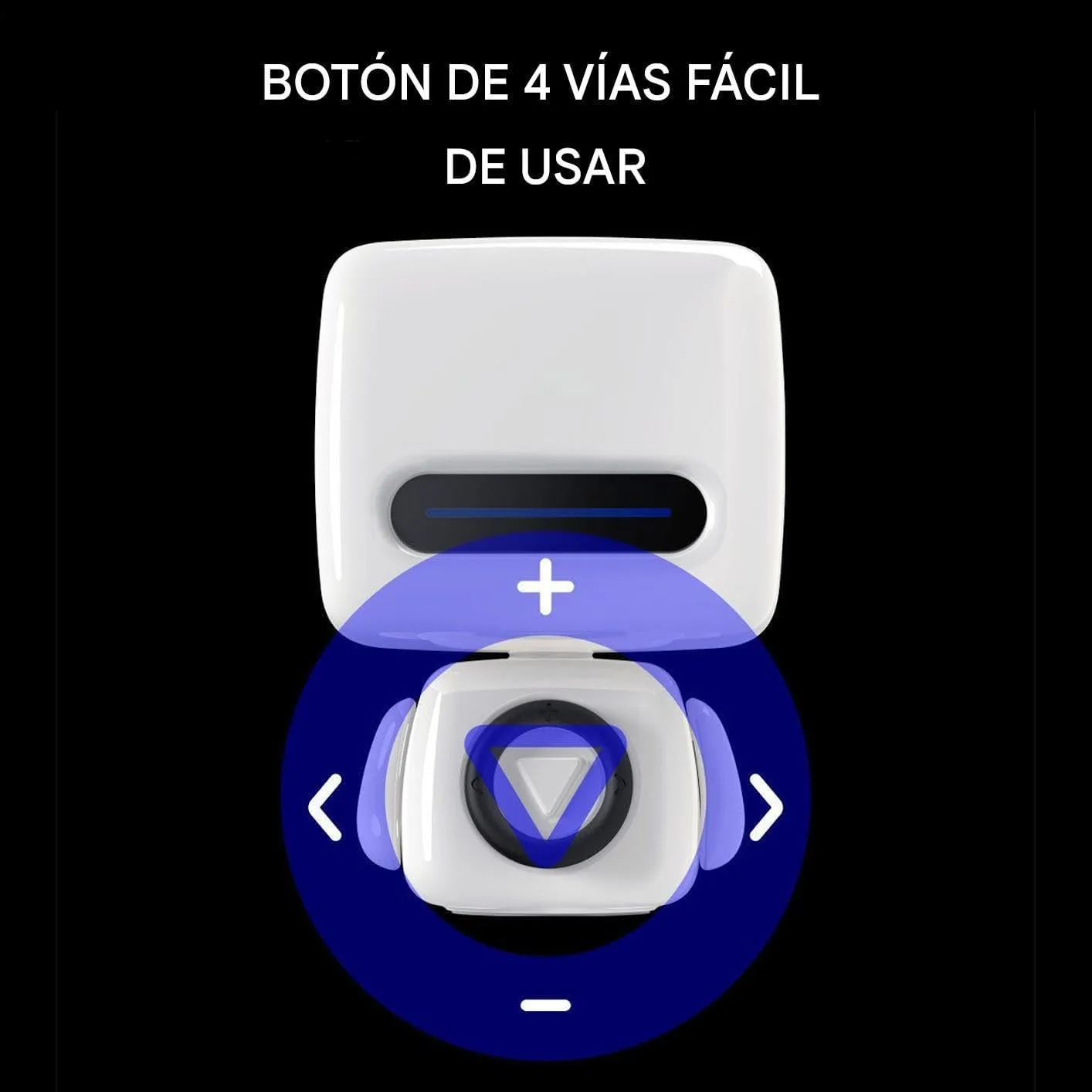 Fabricado con enfoque en portabilidad extrema. Dimensiones compactas y peso mínimo permiten cabida en bolsillo y agarre ergonómico. Autonomía extendida para experiencias continuas sin añadir carga o incomodidad.