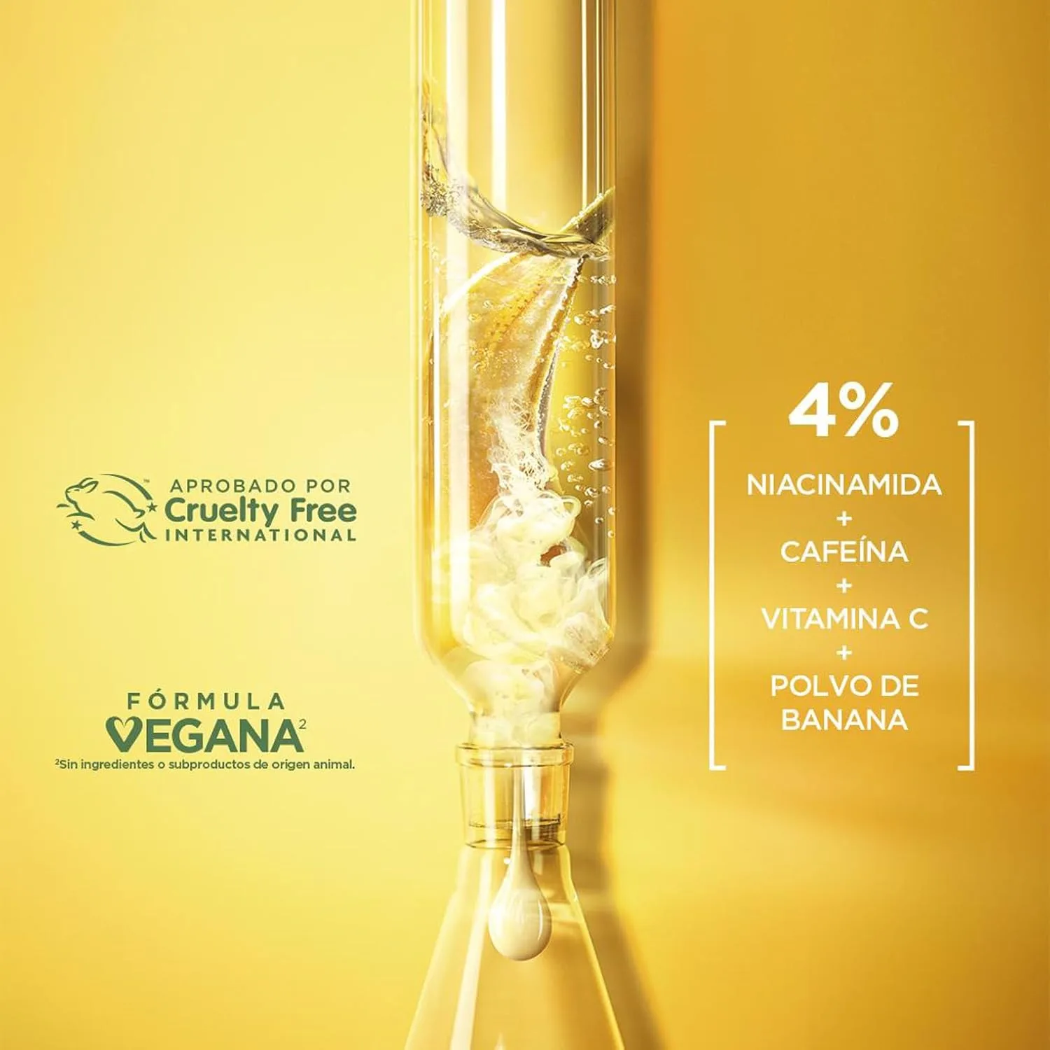 Presentamos la crema iluminadora de ojos con vitamina C de Garnier, impulsada por las ciencias green formulada con un 4% de vitamina C, niacinamida, cafeína y polvo de banana. Aplica mañana y noche para reducir los signos de fatiga, incluyendo la aparición de ojeras y líneas de expresión. Para un efecto refrescante extra, guárdala en el frigorífico. Utilízala junto con el Agua Micelar con Vitamina C de Garnier, el Sérum de día de Vitamina C y la Crema-Sérum con SPF25 para una rutina anti-manchas completa. La ciencia detrás de la fórmula: La Vitamina C (derivado de la Vitamina C) conocida como un activo dermatológico, se obtiene por biotransformación y ayuda a iluminar la piel y mejorar la tez. El plátano en polvo es un extracto de origen natural – Clínicamente comprobado: ayuda a reducir 6 signos de fatiga**: ojeras, líneas finas, tono apagado, falta de firmeza, falta de suavidad y apariencia general de la piel. *Test clínico – 79 individuos, 1 aplicación por la noche. Sin perfume: guardar en el frigorífico para obtener un efecto refrescante adicional. Utilizar antes del corrector. Nuestra crema de contorno de ojos tiene una fórmula vegana (sin ingredientes de origen animal ni derivados) y no contiene perfume. Todos los productos Garnier a nivel mundial están aprobados oficialmente por Cruelty Free International bajo el programa Leaping Bunny, la organización líder que trabaja para acabar con las pruebas en animales, y el reconocido Cruelty Free Gold Standard. La caja y el tubo pueden reciclarse y el cartón cuenta con la certificación FSC. Al utilizar un cartón certificado FSC para esta caja, Garnier apoya una gestión forestal respetuosa con las personas y la naturaleza.