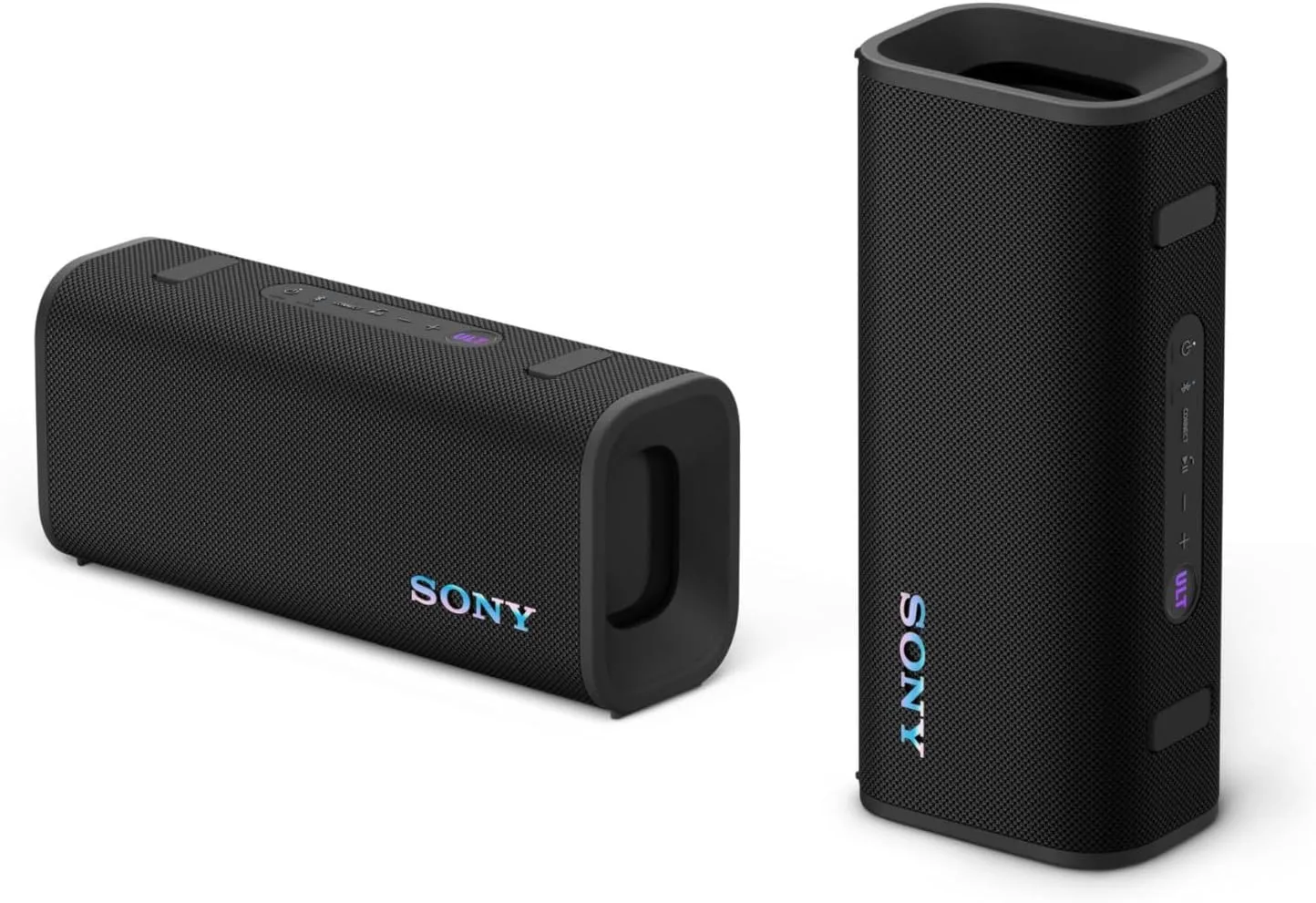 LLÉVATE LA MÚSICA CONTIGO: Puedes meter este altavoz sony compacto en un bolso o utilizar la correa desmontable para el hombro; Es tan versátil que funciona en horizontal y en vertical