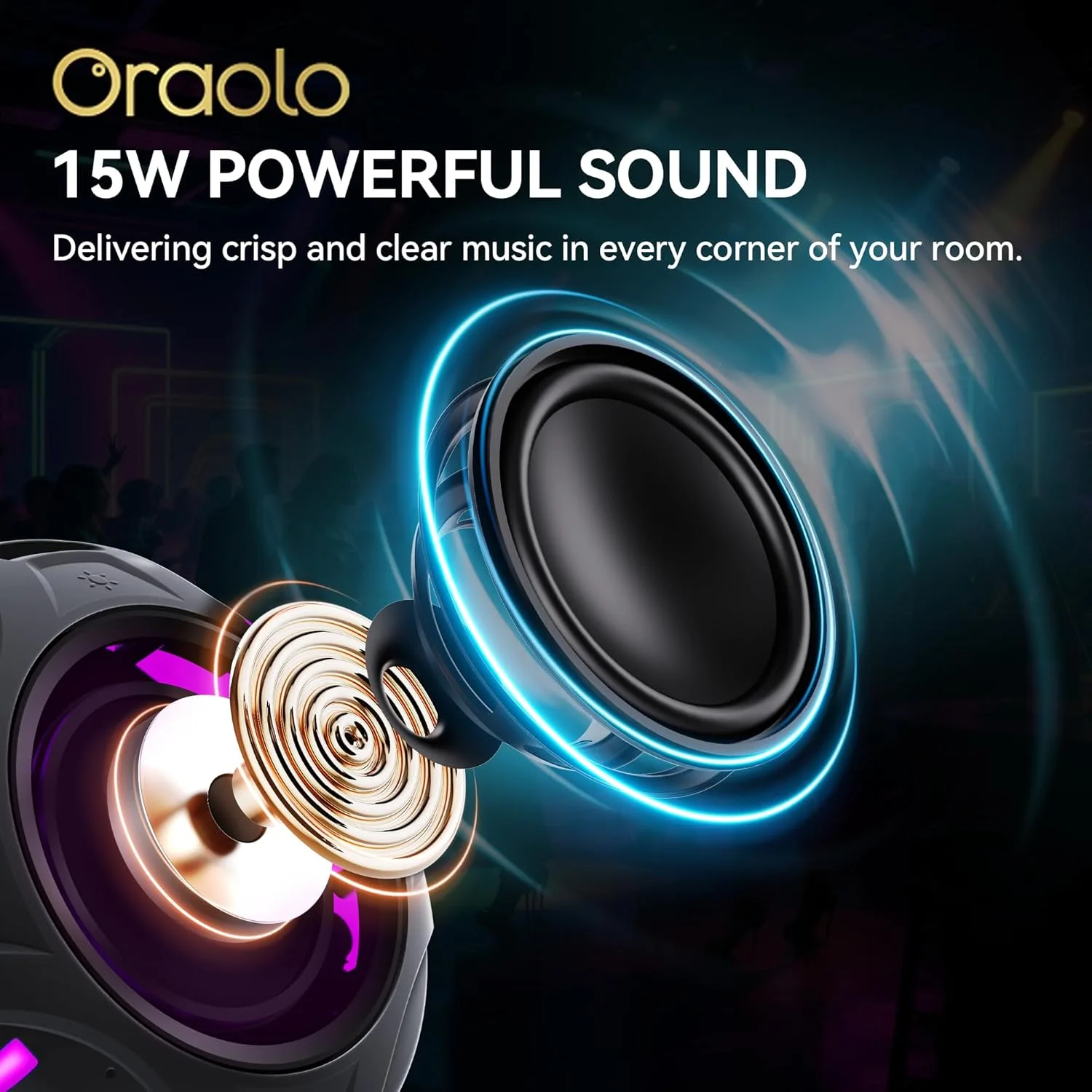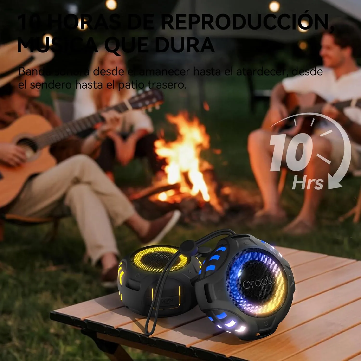【Altavoces Bluetooth – 30 Horas de Autonomía】Carga rápida USB (4-5 horas para carga completa) y batería de litio de alto rendimiento que dura hasta 30 horas (con luces LED apagadas y volumen al 50%). Acompañándote desde el amanecer hasta bajo las estrellas.