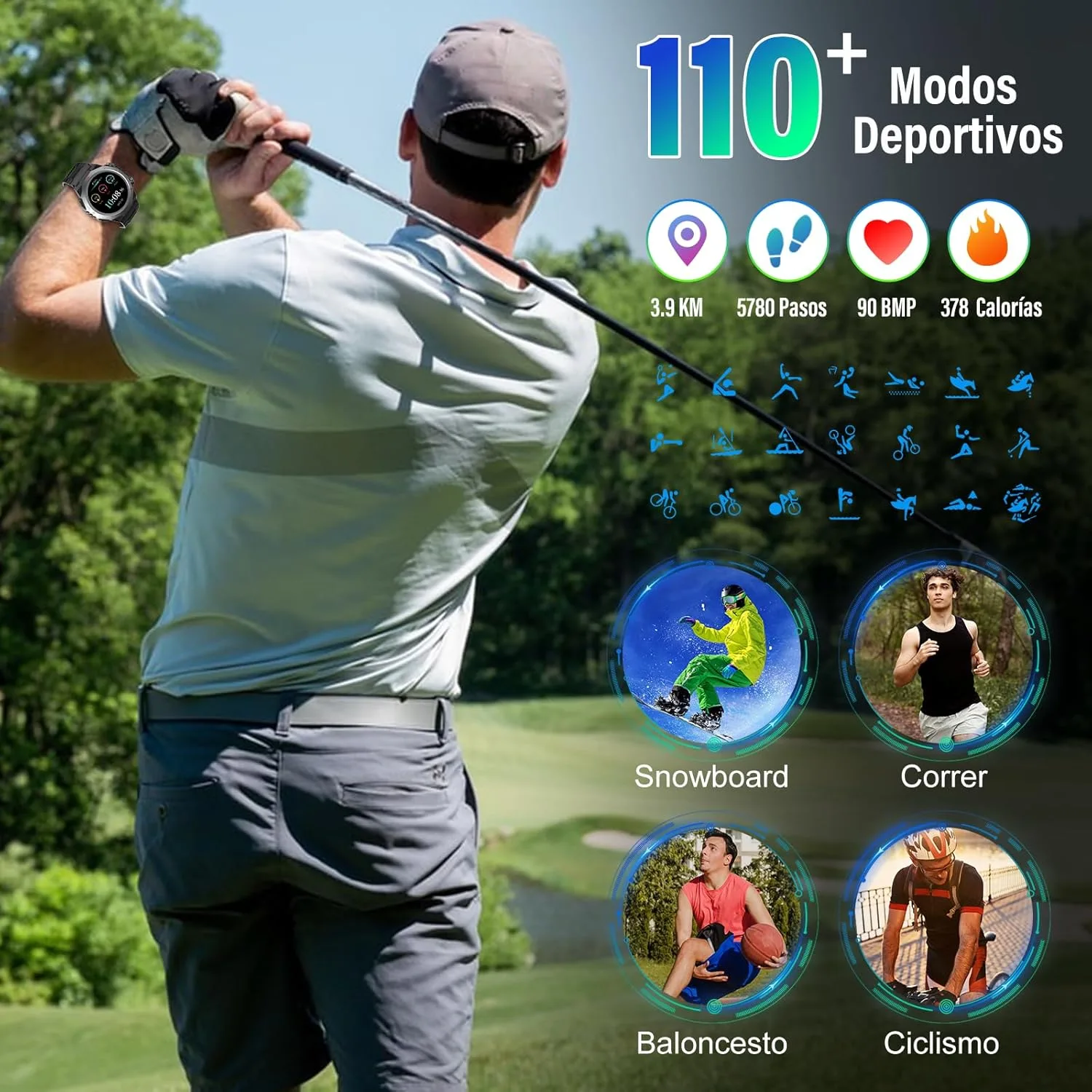 Pantalla HD de 1.39 pulgadas: El smartwatch cuenta con una carcasa de metal y materiales especiales que lo hacen resistente al calor, al frío, a la humedad y al polvo. La pantalla full touch HD de 1.39 pulgadas ofrece colores vibrantes y una operación rápida. El reloj inteligente soporta más de 300 esferas, y puedes añadir cualquier foto para personalizar tu pulsera inteligente hombre, ¡lo que lo hace muy adecuado para actividades al aire libre!