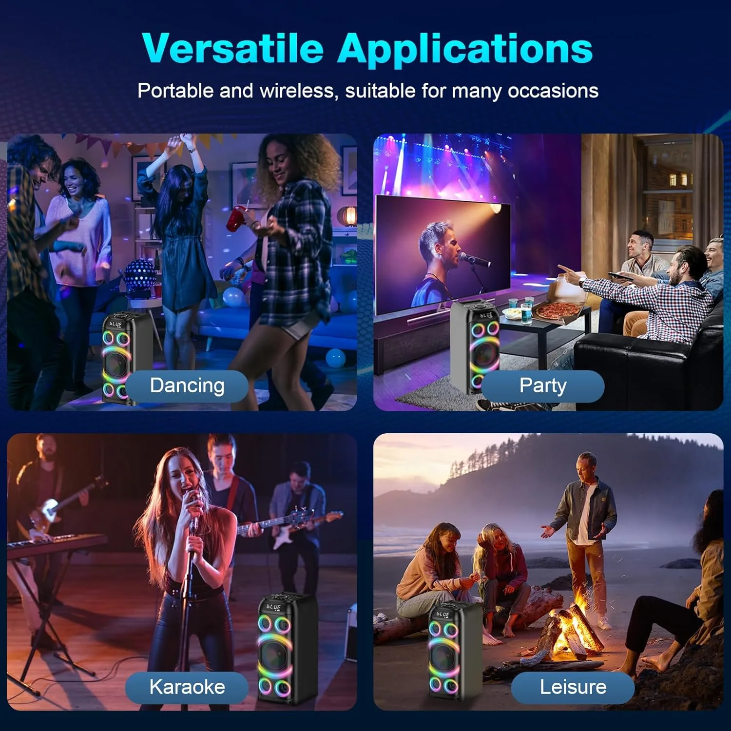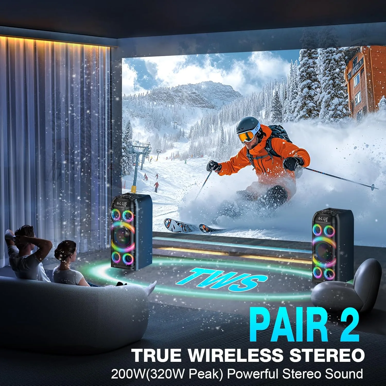 Altavoz Bluetooth 160W Potencia Máxima, Potente Sonido Estéreo Bassi Profondi Altavoces Portátiles Grandes para Fiestas con Subwoofer, Emparejamiento TWS, Luz LED Dinámica para Fiestas Camping