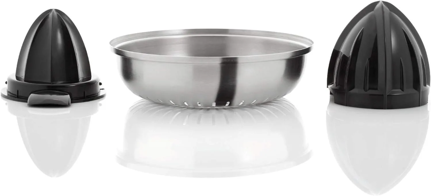 Exprimidor 85 w con dos conos intercambiables para una mayor adaptabilidad a las frutas; naranjas, limones y pomelos