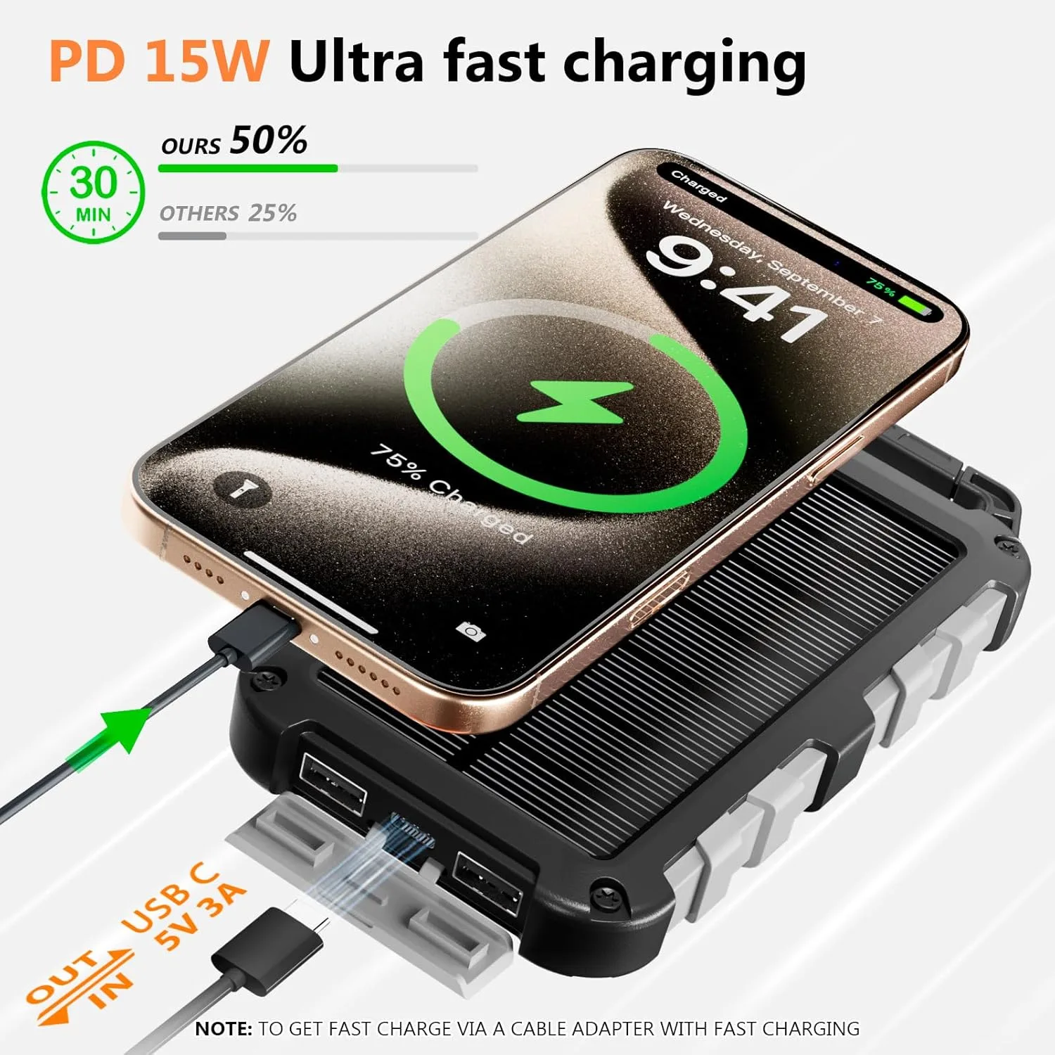 Battery Capacity: With 26800mAh, you can expect several charges for your devices, which is a big plus when you’re off the grid.