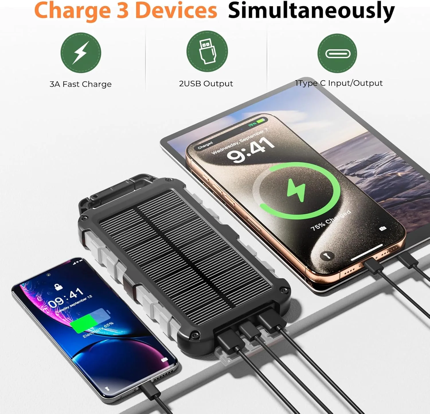 The integrated solar panels are a nice touch, especially for extended outdoor trips. While the solar charging capability is useful in emergency situations, it’s not the fastest way to recharge the power bank—especially when sunlight is limited or cloudy days occur. You’ll likely need to rely on a wall charger for a full charge. That being said, it’s great to have as a backup option if you’re camping or hiking and need to top off your power bank during the day.