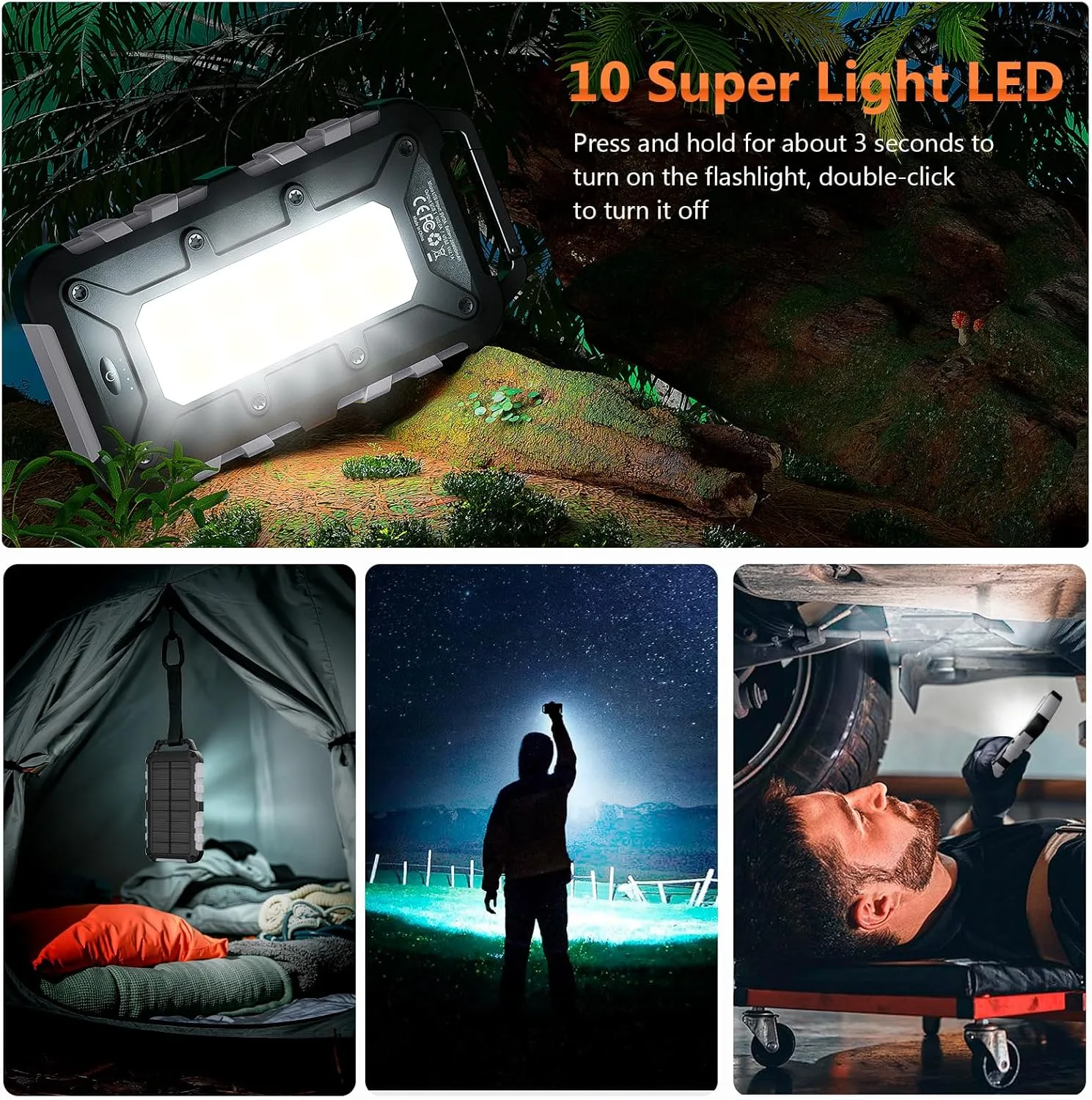 The WOWMVP Solar Power Bank comes in a vibrant orange color that’s easy to spot, even when it's buried in your bag or gear. The tough, rugged build ensures that it can withstand the elements. It’s water-resistant, shockproof, and has a textured surface that prevents slipping—perfect for outdoor use. The 26800mAh capacity means it’s big enough to charge most devices multiple times before needing a recharge itself, but it’s not overly bulky for its size.