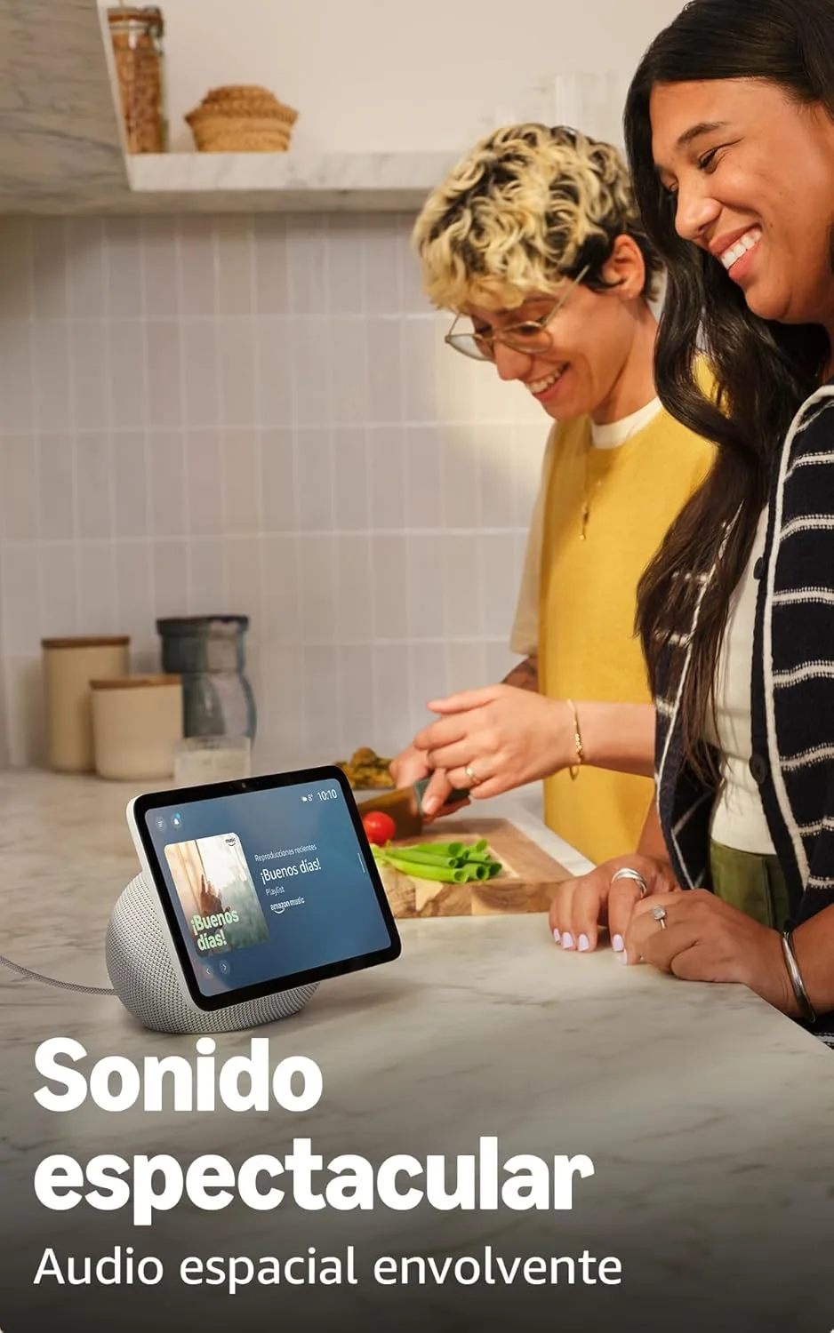 Un sonido espectacular para cualquier contenido: disfruta de música y series con audio espacial envolvente, voces nítidas, mayor amplitud de sonido y graves hasta dos veces más intensos que los del Echo Show 8 (modelo de 2023).